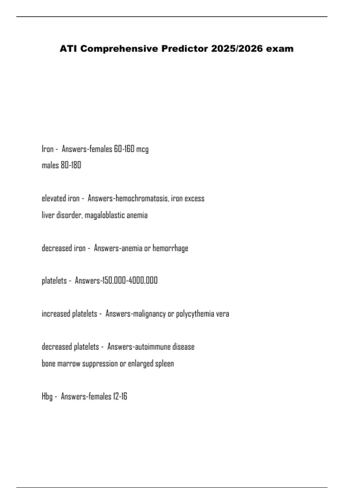 decreased iron - Answers-anemia or hemorrhage