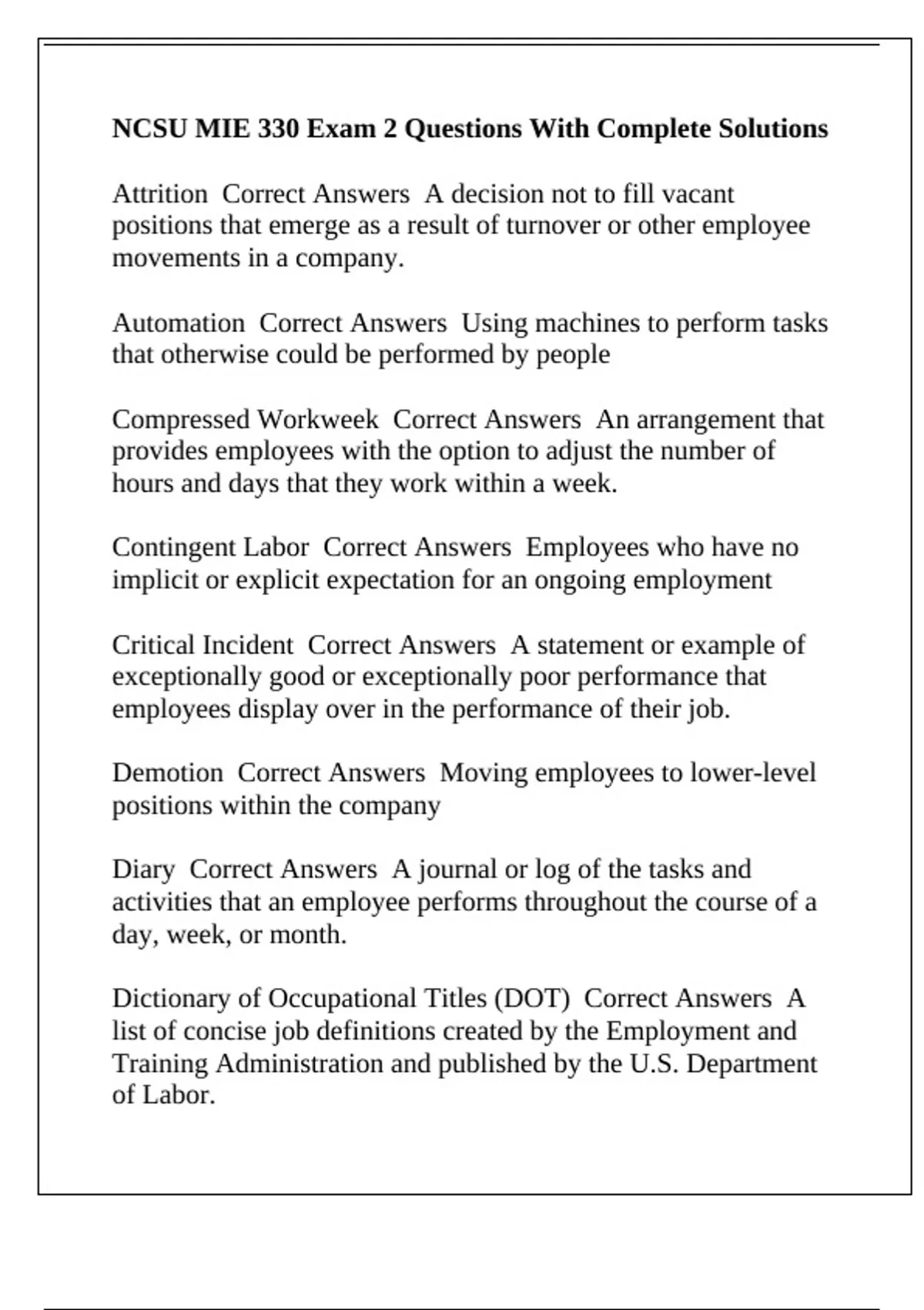 NCSU MIE 330 Exam 2 Questions With Complete Solutions