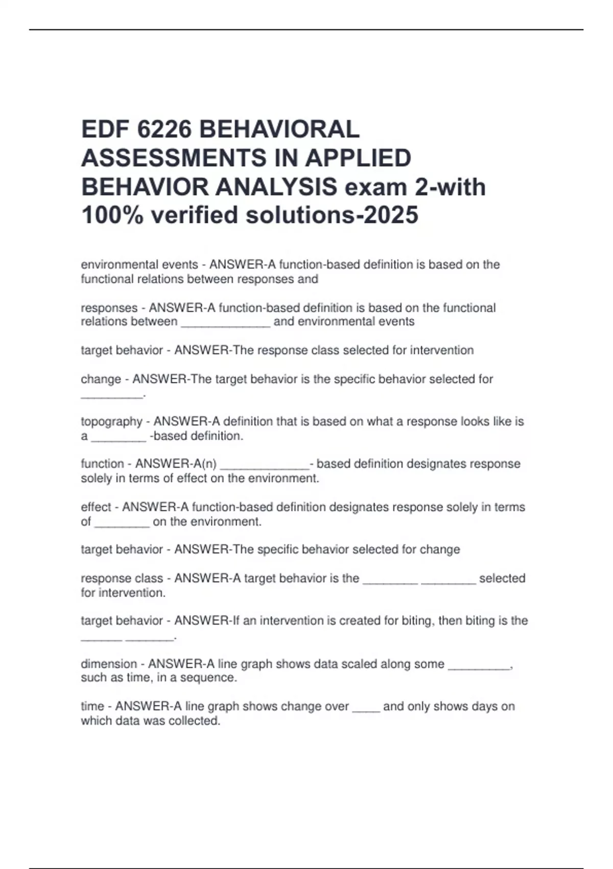 EDF 6226 BEHAVIORAL ASSESSMENTS IN APPLIED BEHAVIOR ANALYSIS exam 2
