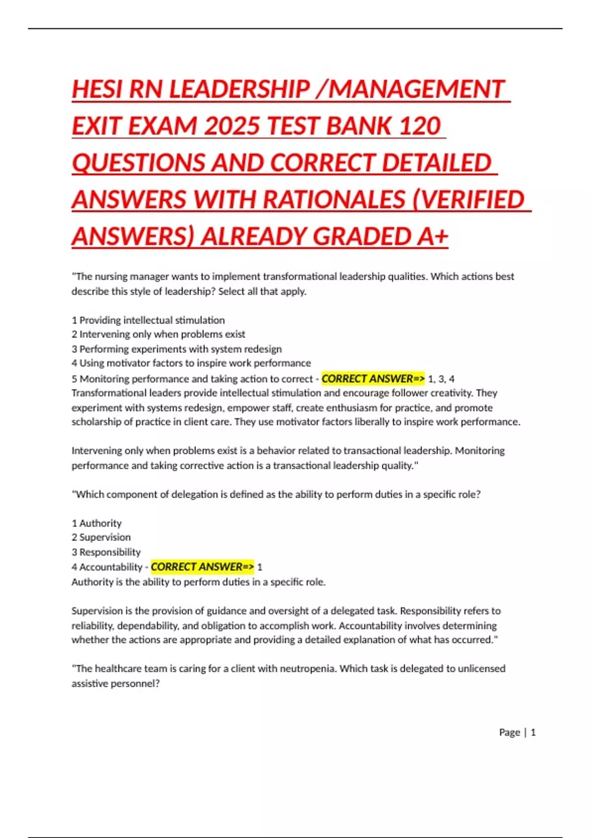 QUESTIONS AND CORRECT DETAILED
