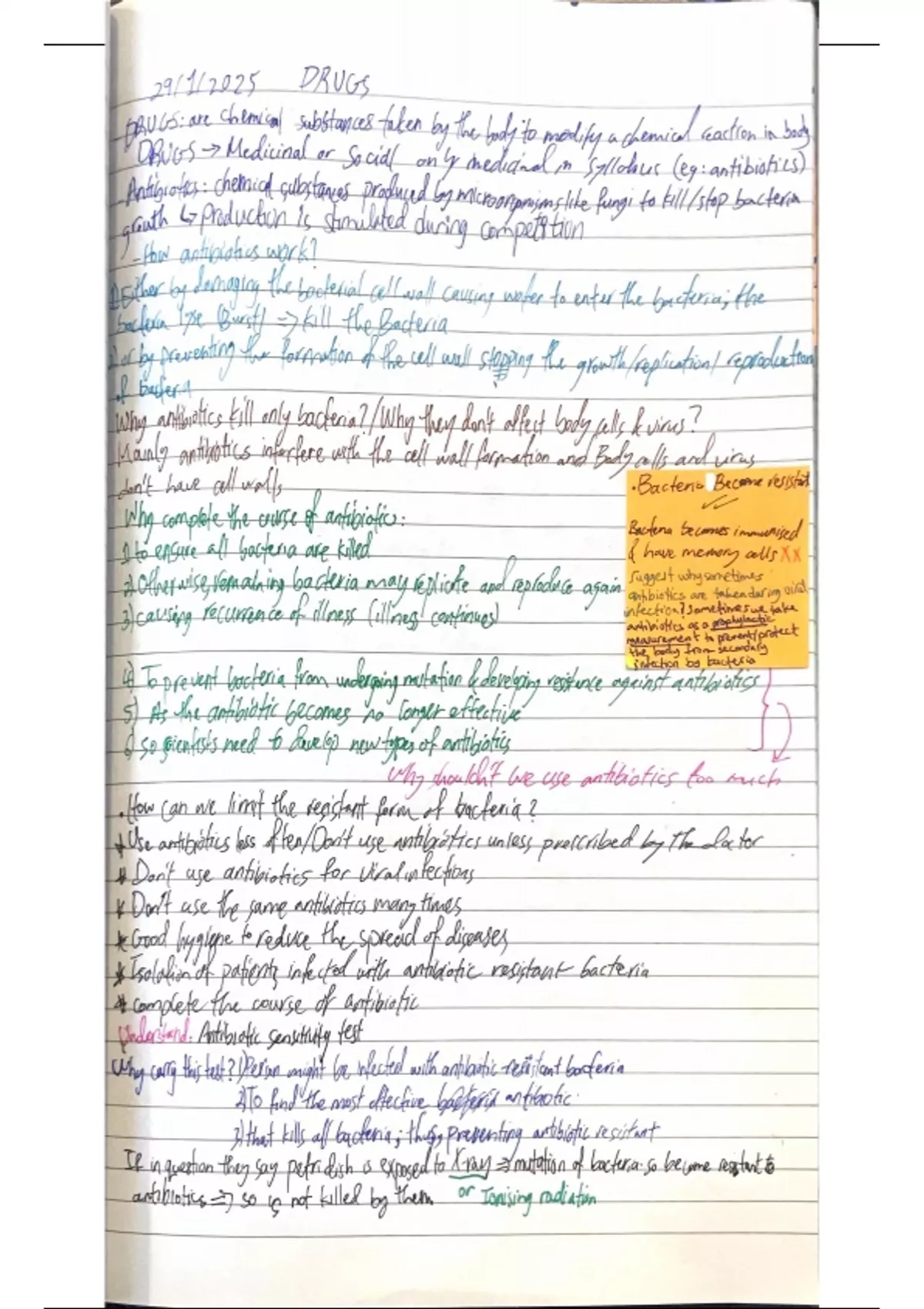 This document provides a concise summary of the drugs lesson, specifically referring to the 0970/0610 syllabus. It comprehensively explains every challenging concept covered in the lesson and includes solutions to several difficult suggestion questions. Additionally, it connects the concept of antibiotic resistance to natural selection, so natural selection can also be found explained in the notes. I hope this document proves helpful to you.