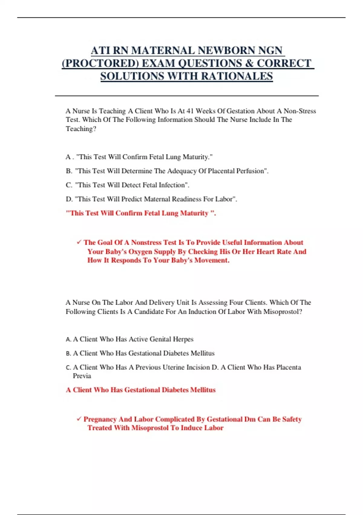 ATI RN MATERNAL NEWBORN NGN