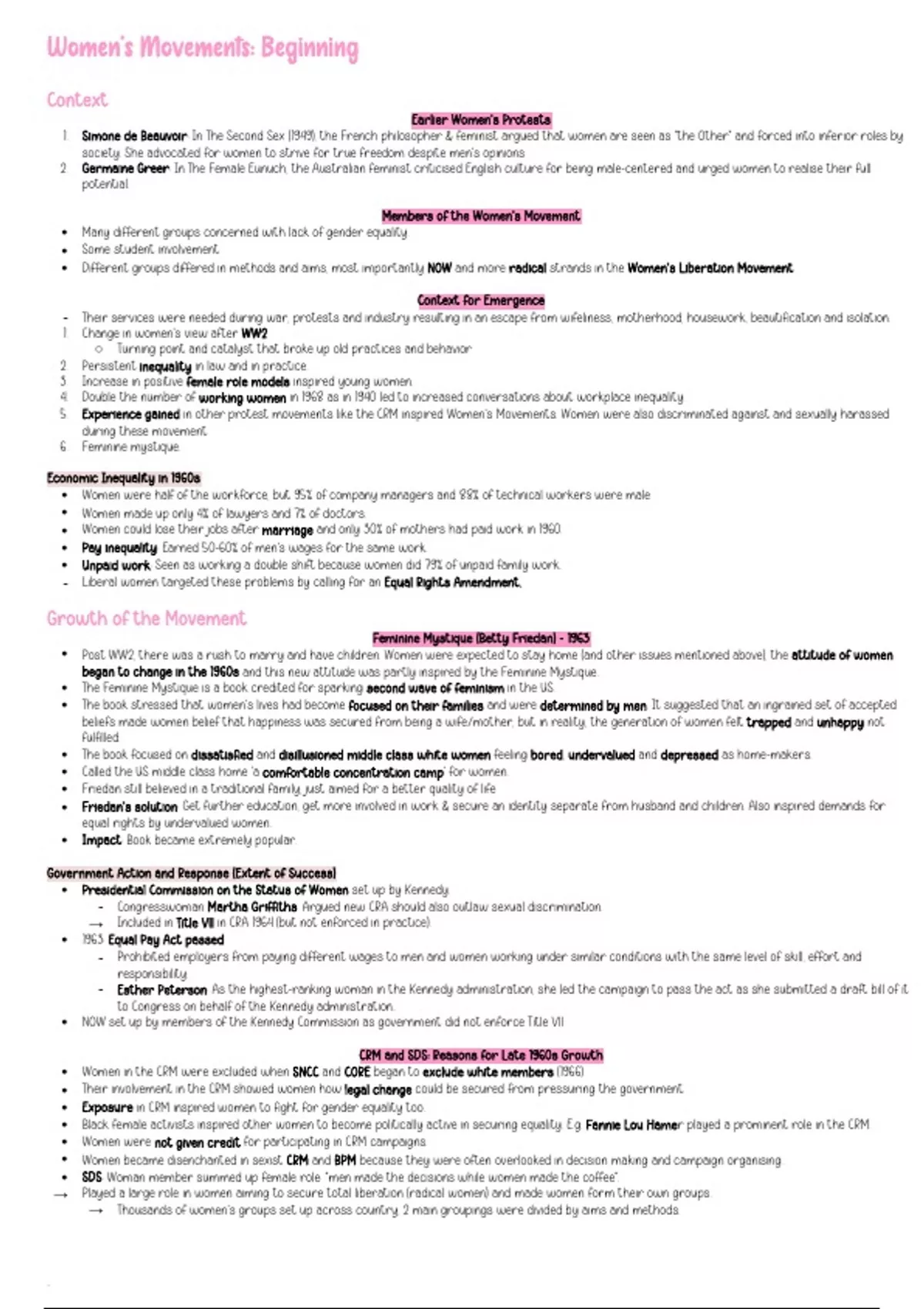 • Different groups differed in methods and aims, most importantly NOW and more radical strands in the Women's Liberation Movement
