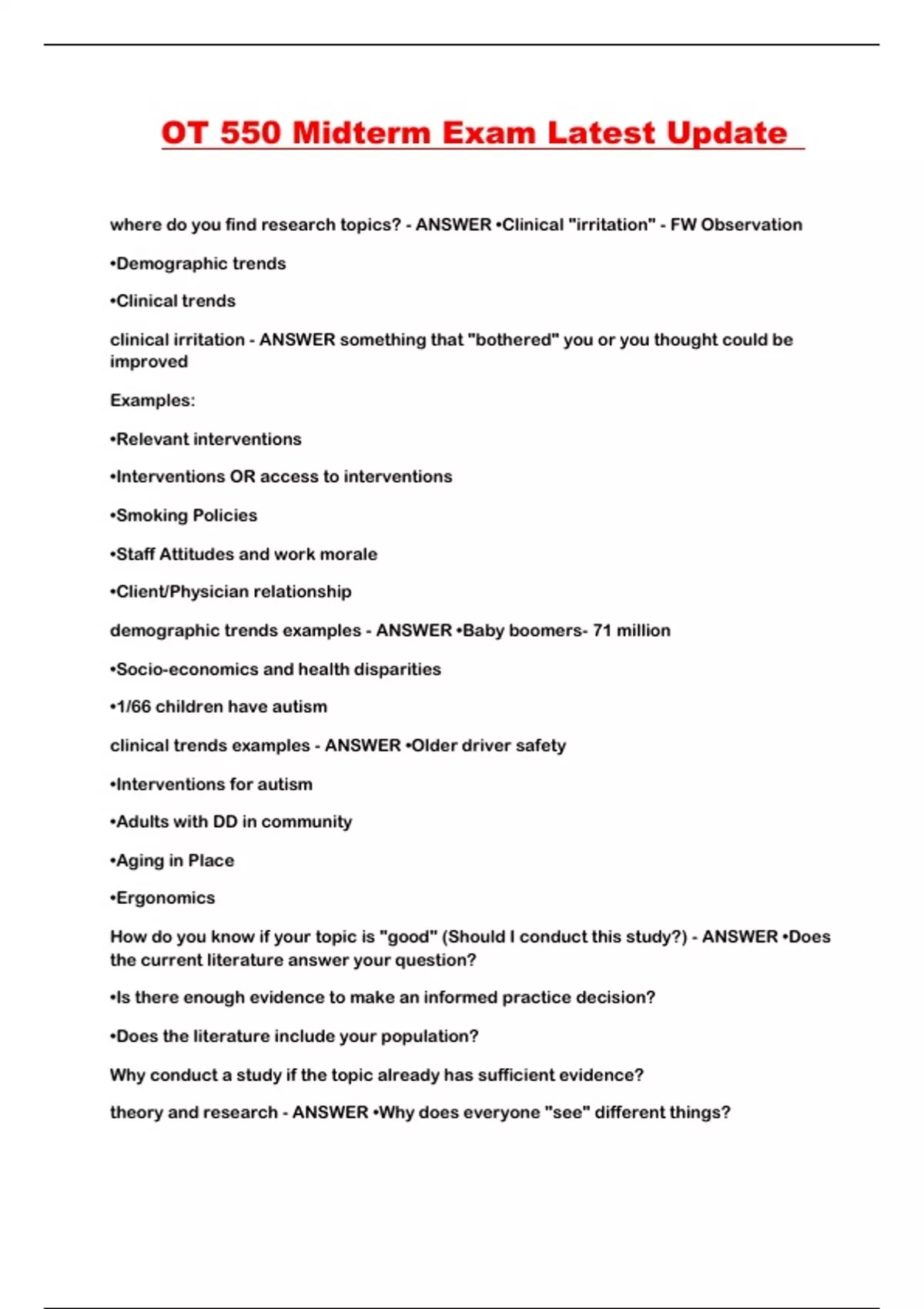 OT 550 Midterm Exam Latest Update
