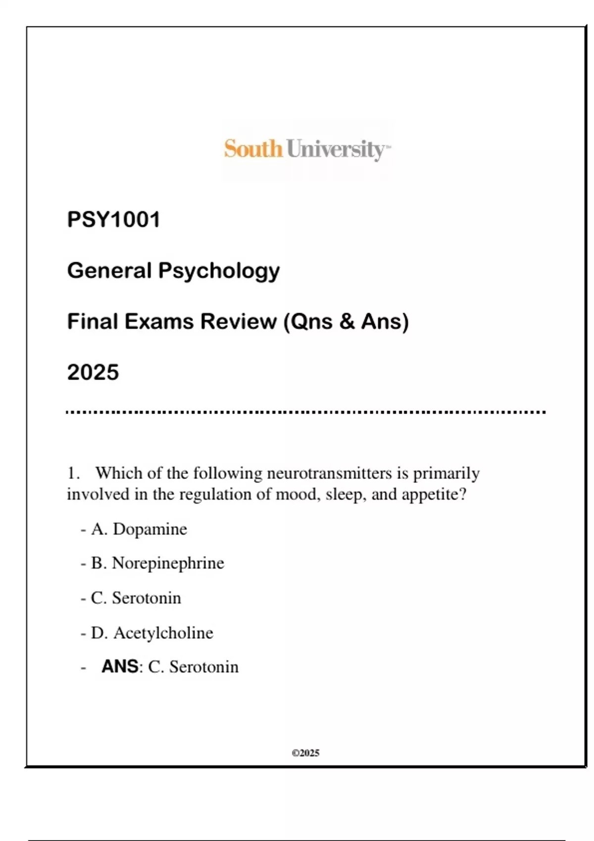PSYC1001 General Psychology Finals Exams Review 2025 (Qns & Ans).