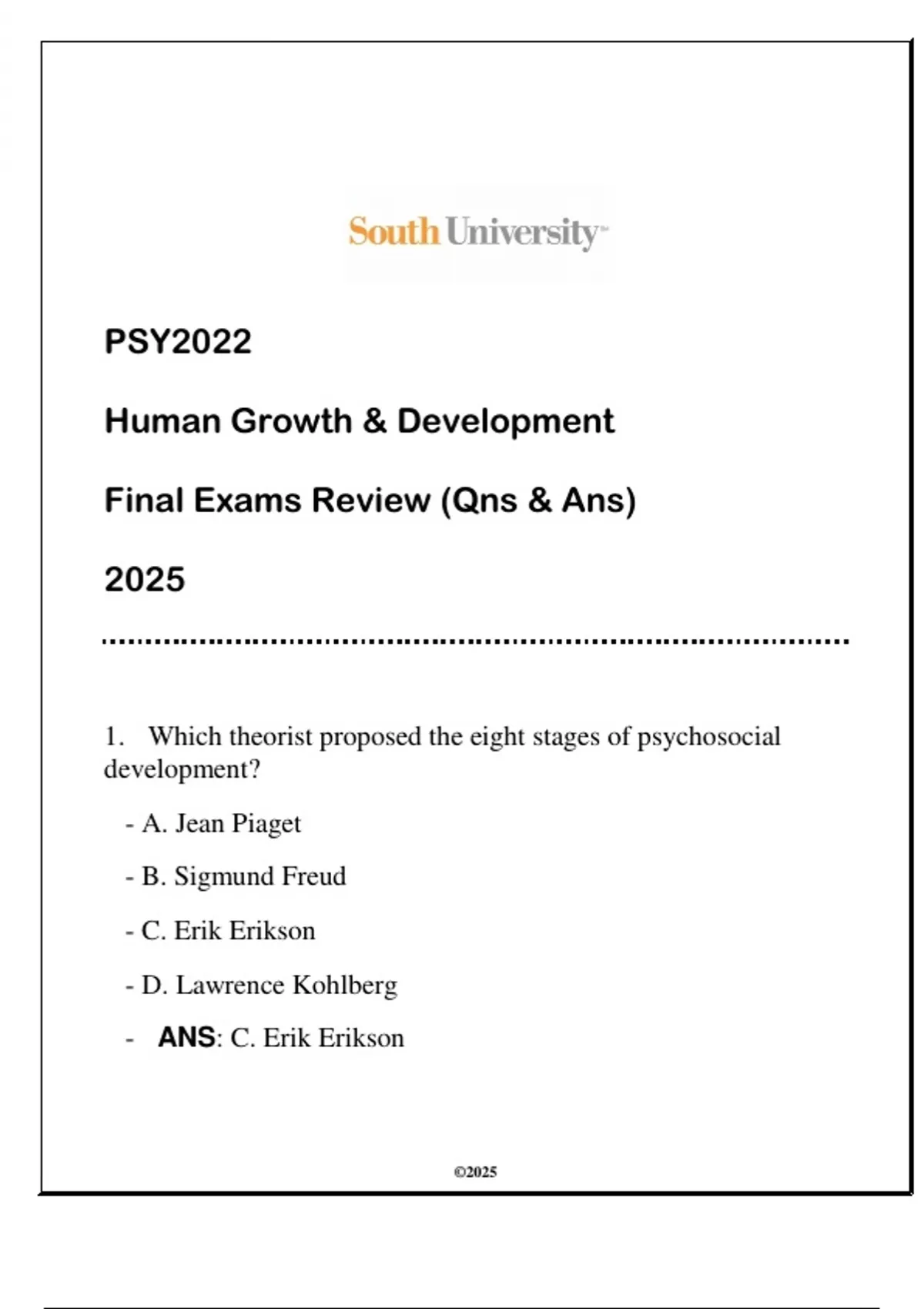 - ANS: C. Erik Erikson