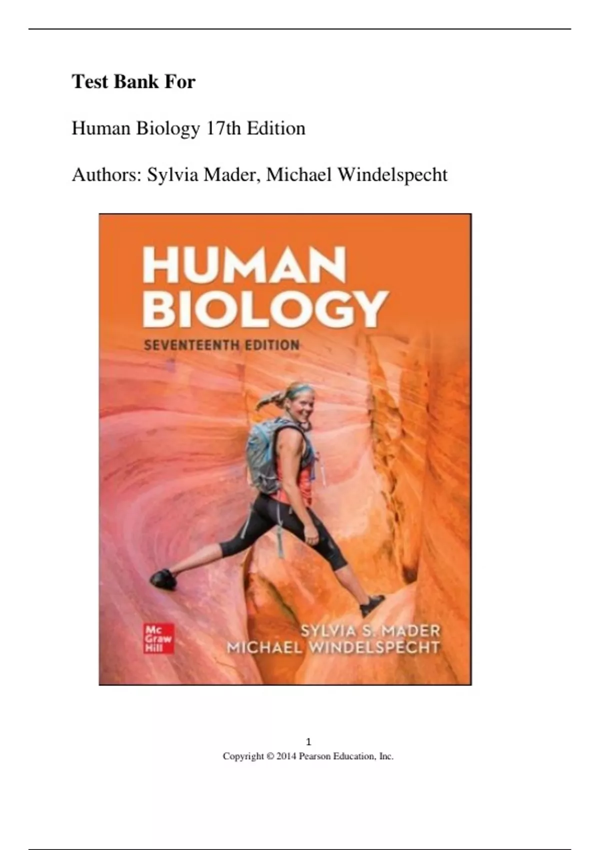 Test Bank For Human Biology 17th Edition By: Sylvia Mader | All Chapters | Latest Edition