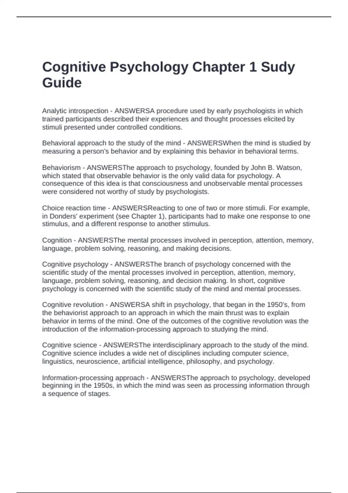 Cognition - ANSWERSThe mental processes involved in perception, attention, memory,