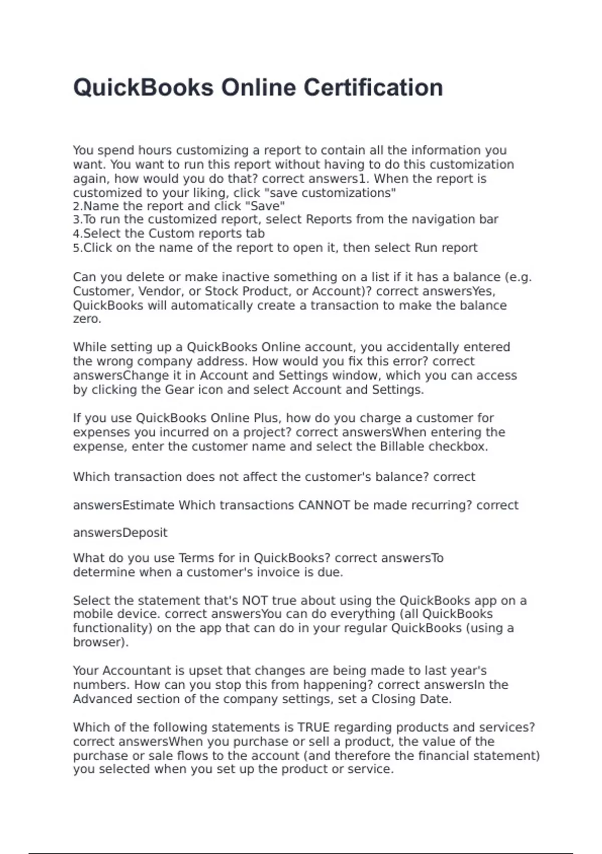 QuickBooks. Which of the following CAN be imported? correct answersChart