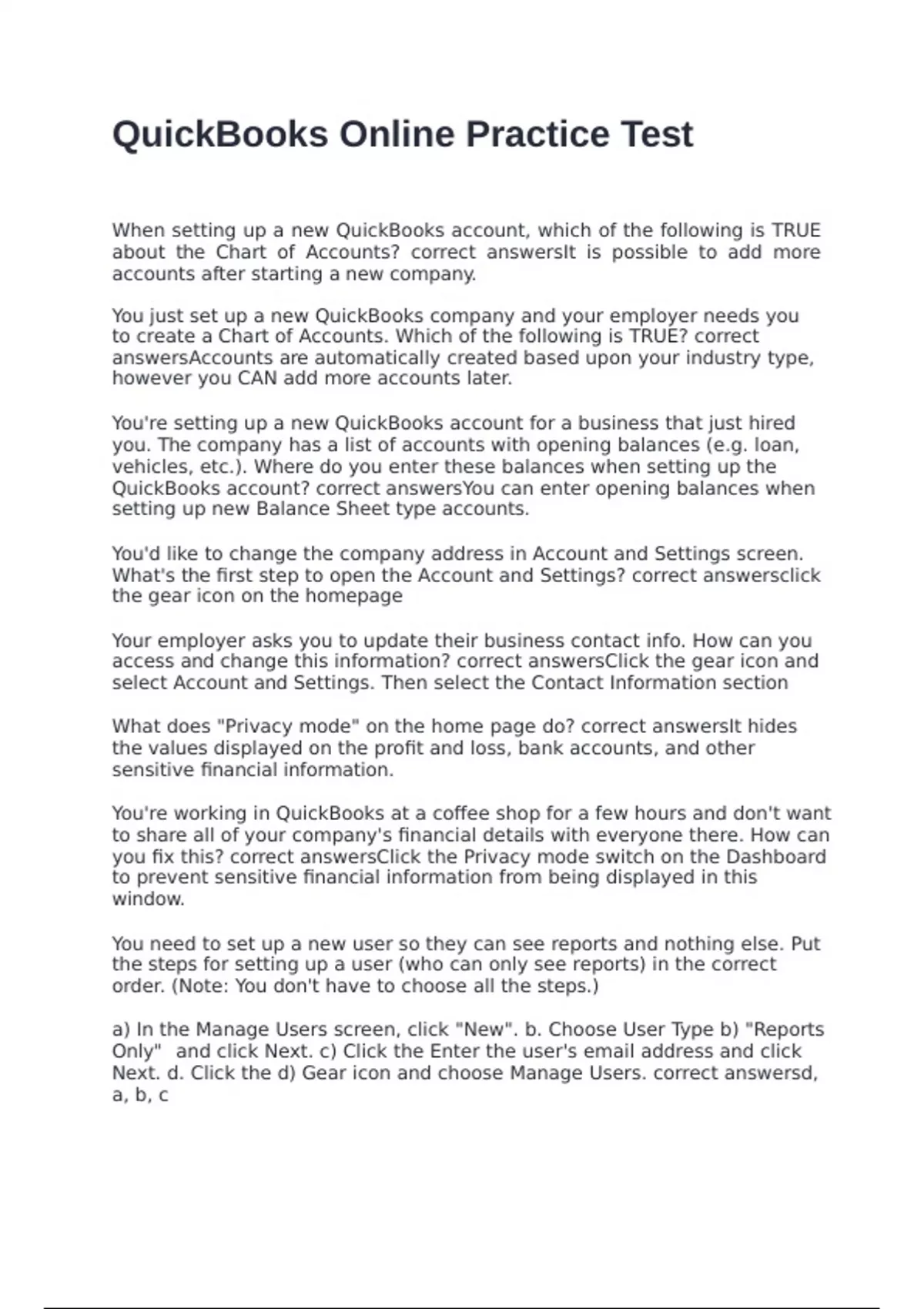 QuickBooks account? correct answersYou can enter opening balances when