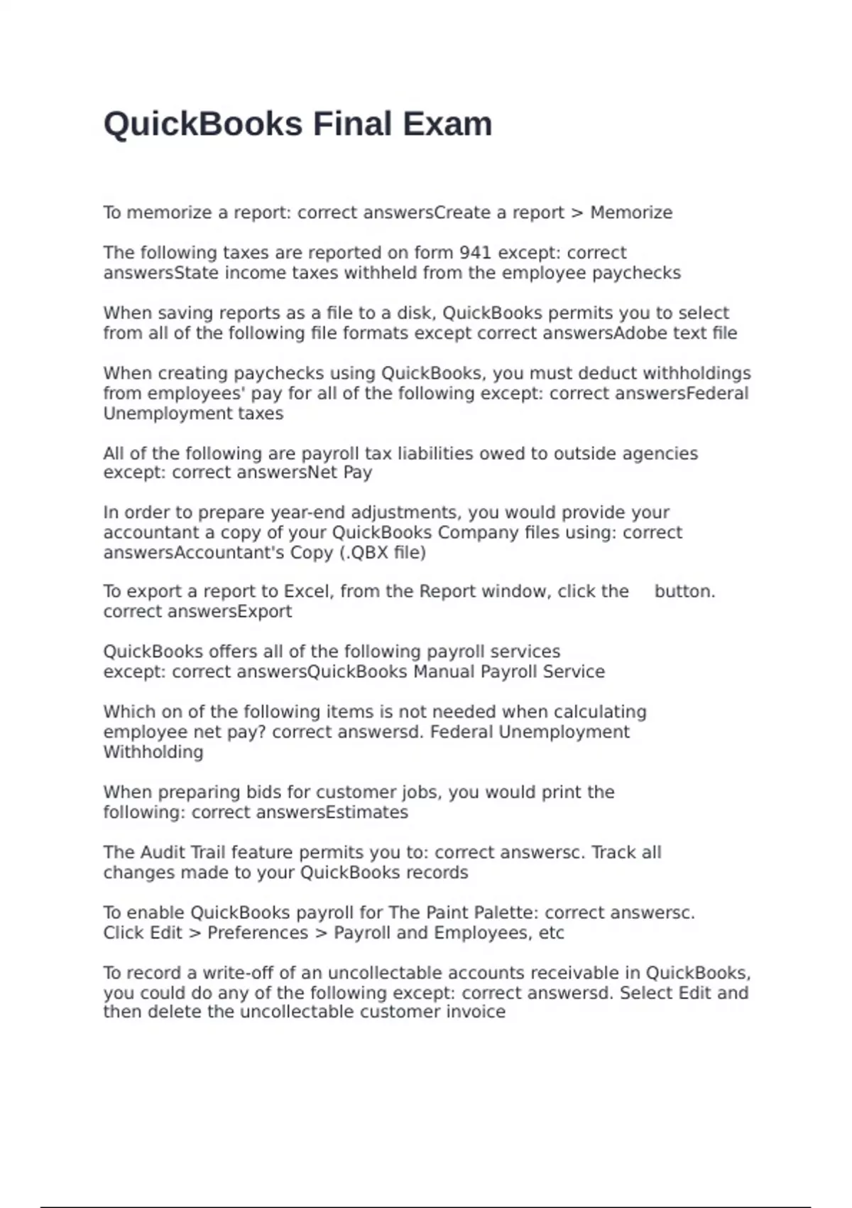 except: correct answersQuickBooks Manual Payroll Service