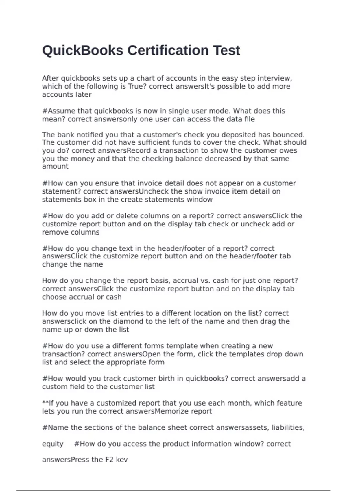 lets you run the correct answersMemorize report