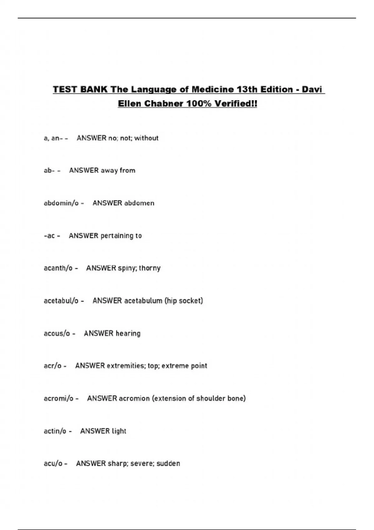 TEST BANK The Language of Medicine 13th Edition - Davi Ellen Chabner 100% Verified!!