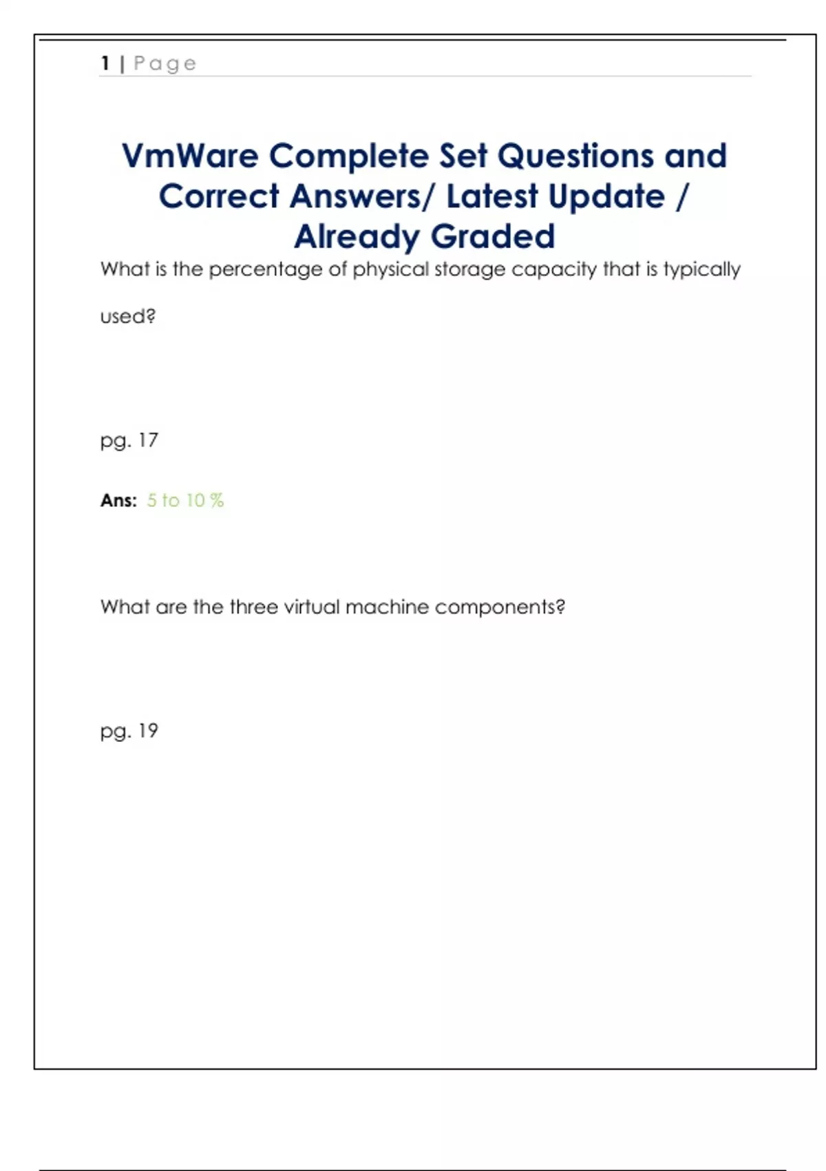 VmWare Complete Set Questions and Correct Answers/ Latest Update / Already Graded