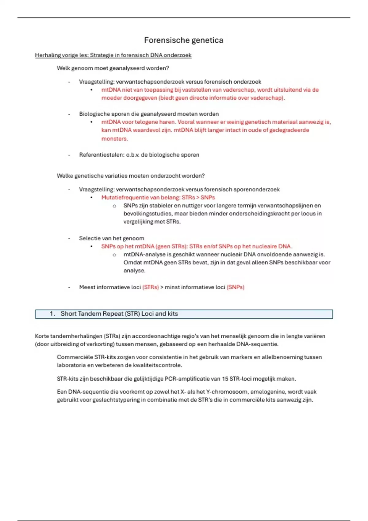 Dit is een samenvatting van les 03 van Forensische genetica, college aantekening in verwerkt.