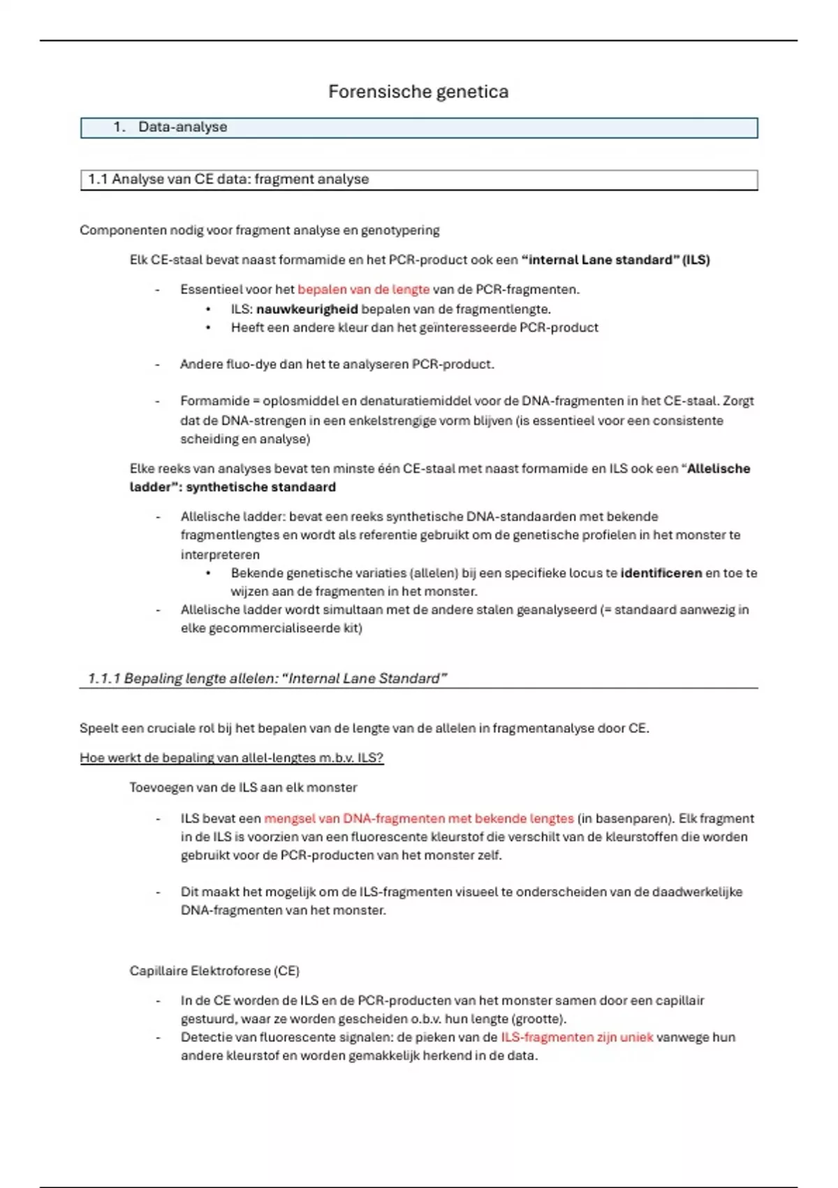 Dit is een samenvatting van les 04 van Forensische genetica, college aantekening in verwerkt.