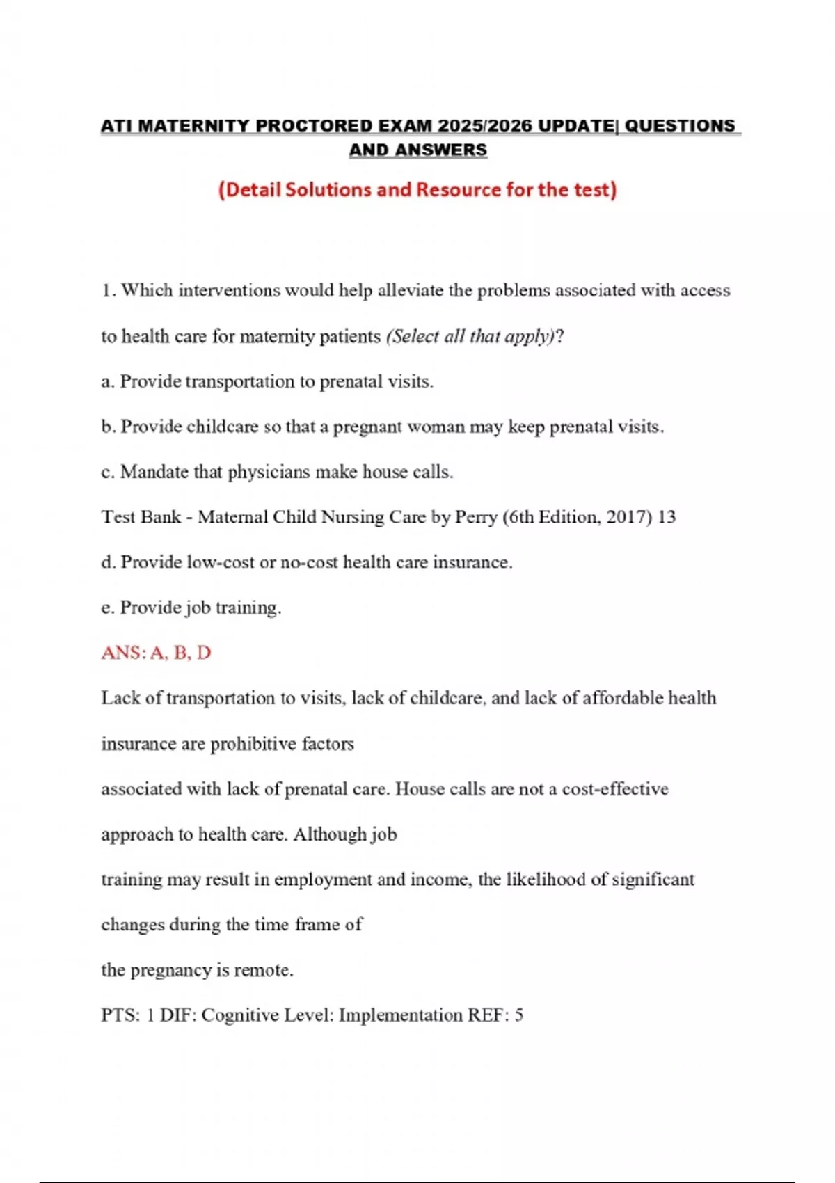 ATI PN MATERNITY PROCTORED EXAM (2025/2026 LATEST UPDATE) QUESTIONS AND ANSWERS