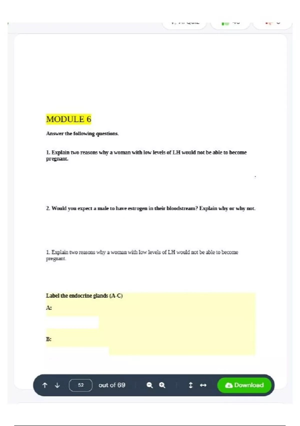 1. Explain two reasons why a woman with low levels of LH would not be able to become