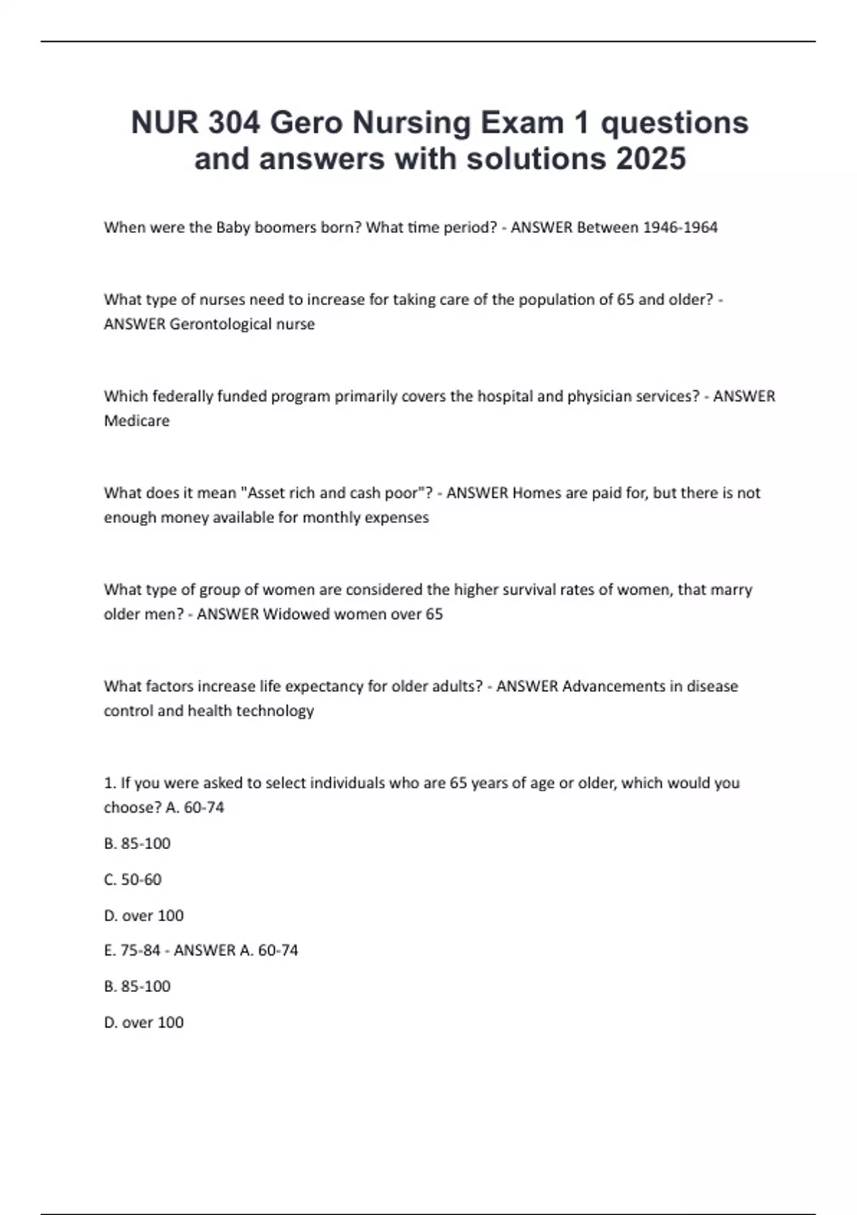 NUR 304 Gero Nursing Exam 1 questions and answers with solutions 2025