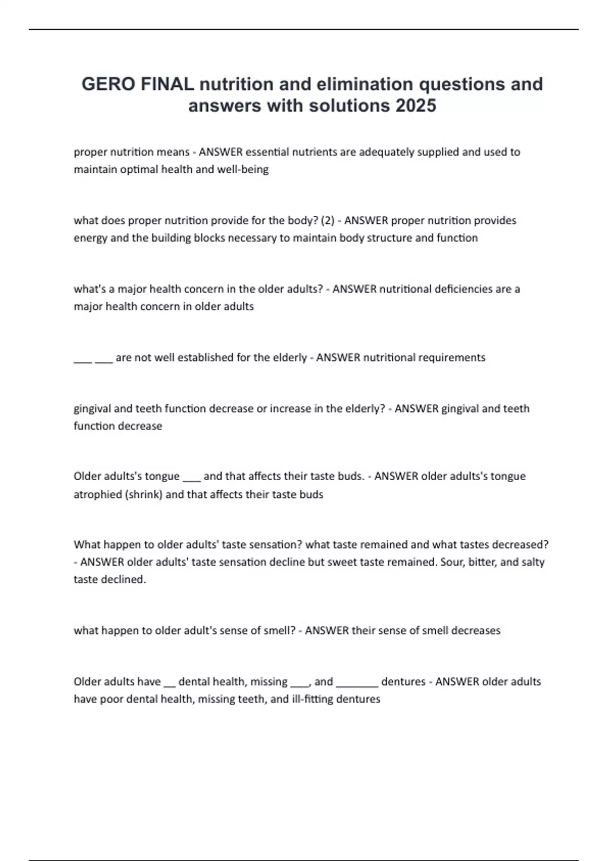 what happen to older adult's sense of smell? - ANSWER their sense of smell decreases