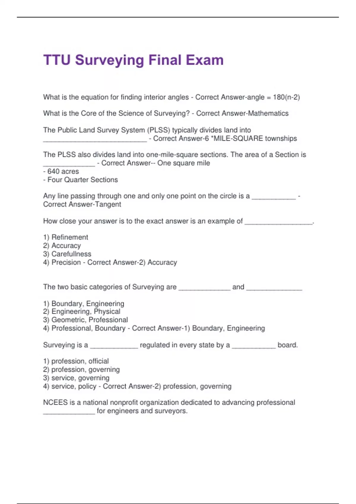 12) Final - Correct Answer-1) Topographic