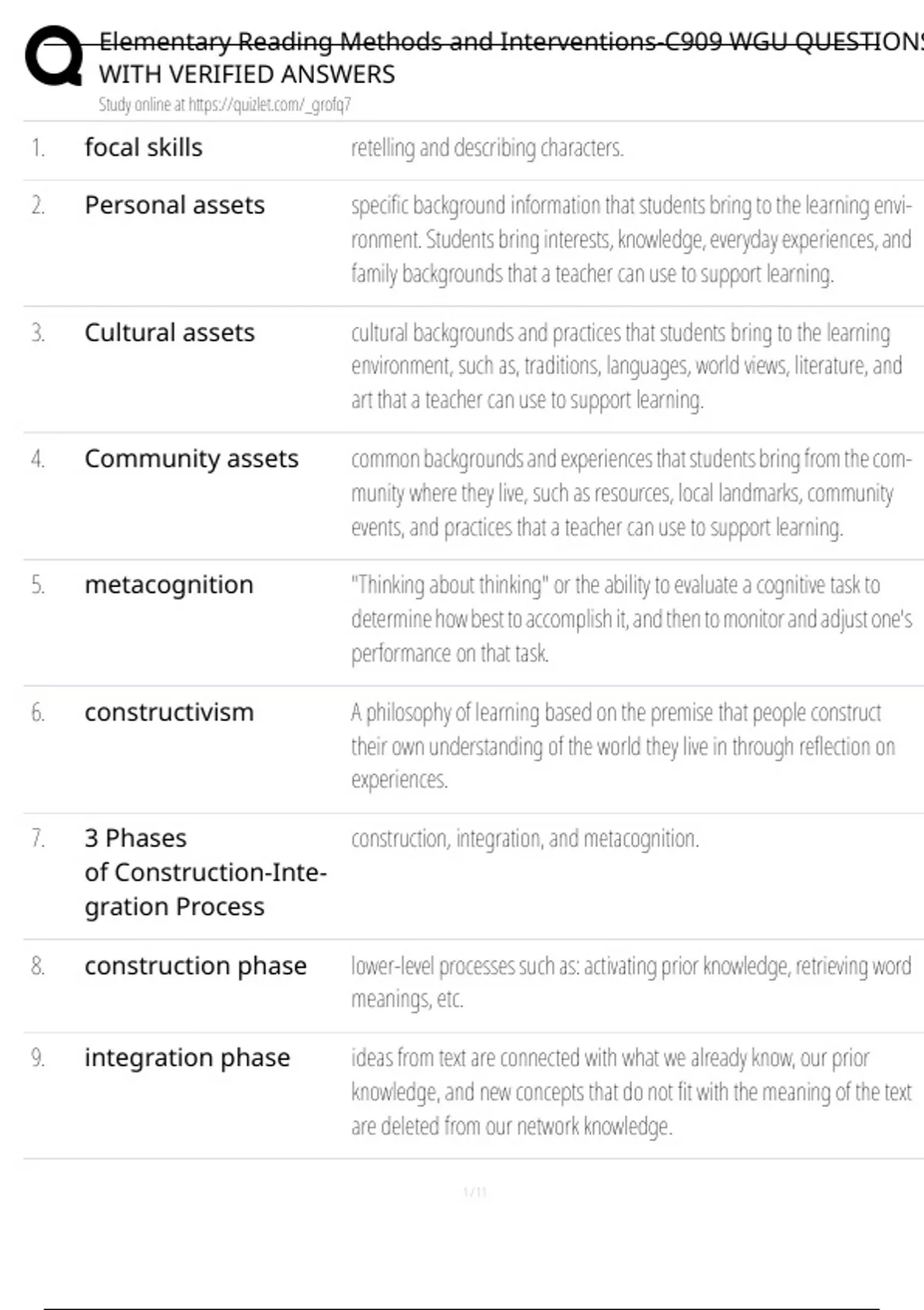 Elementary Reading Methods and Interventions-C909 WGU QUESTIONS WITH VERIFIED ANSWERS