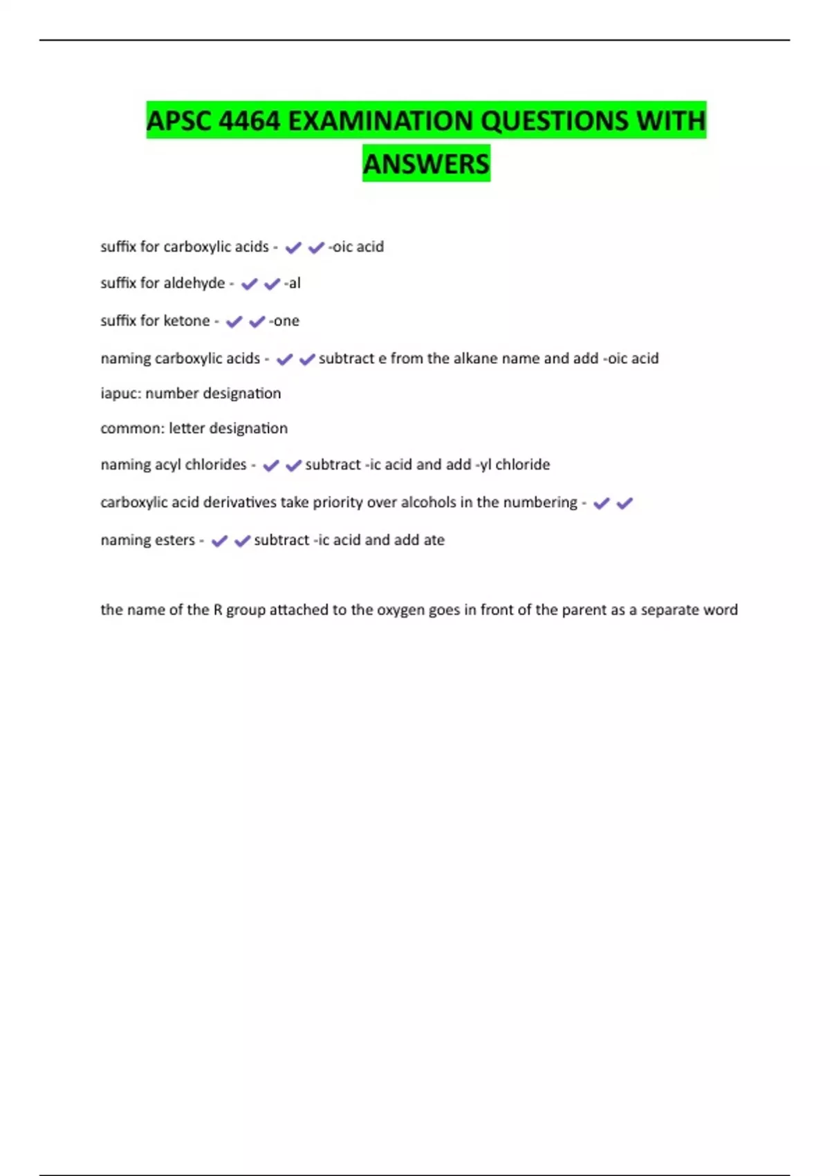 APSC 4464 EXAMINATION QUESTIONS WITH
