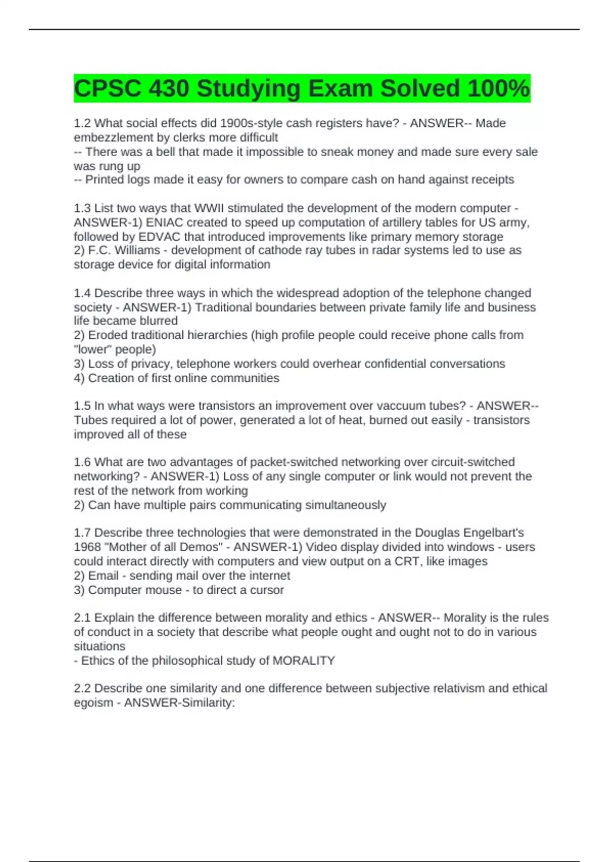 CPSC 430 Studying Exam Solved 100%