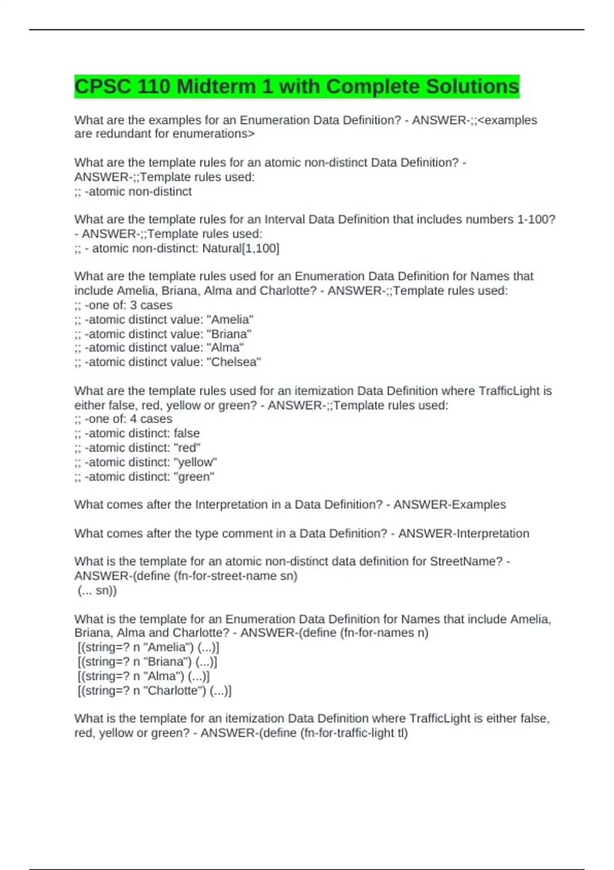 What comes after the Interpretation in a Data Definition? - ANSWER-Examples