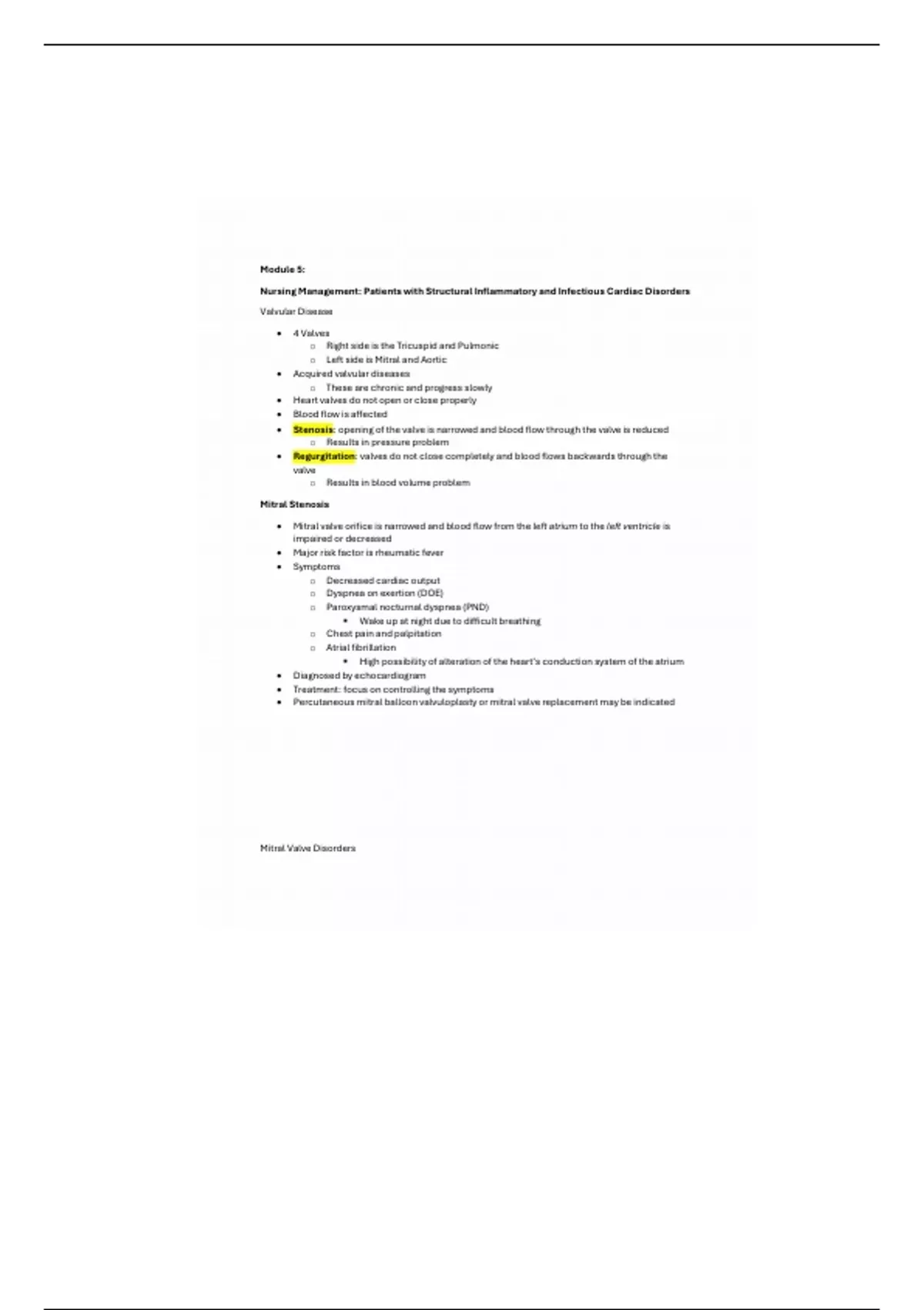 This is a comprehensive and detailed summary on module 5; Patients with Structural cardiac disorders. An Essential Study Resource just for YOU!!