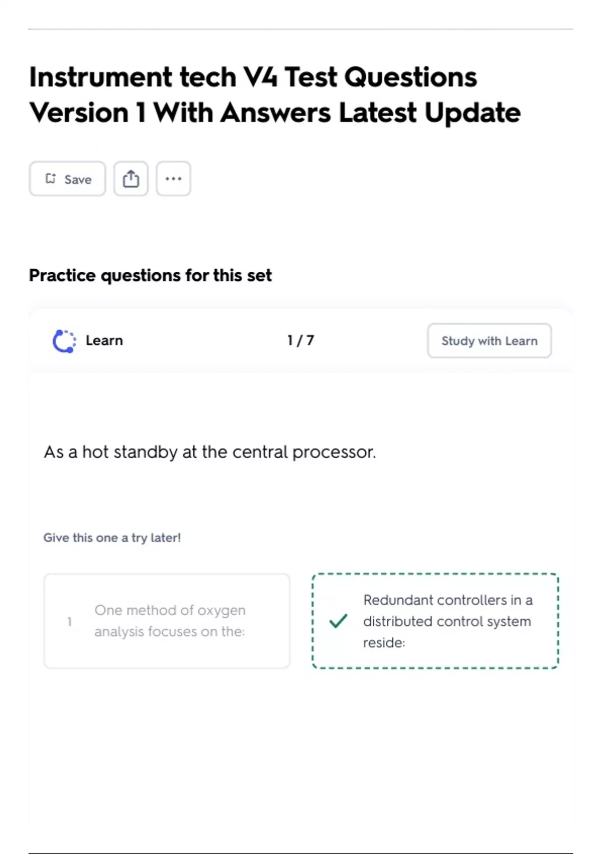 Instrument tech V4 Test Questions Version 1 With Answers Latest Update