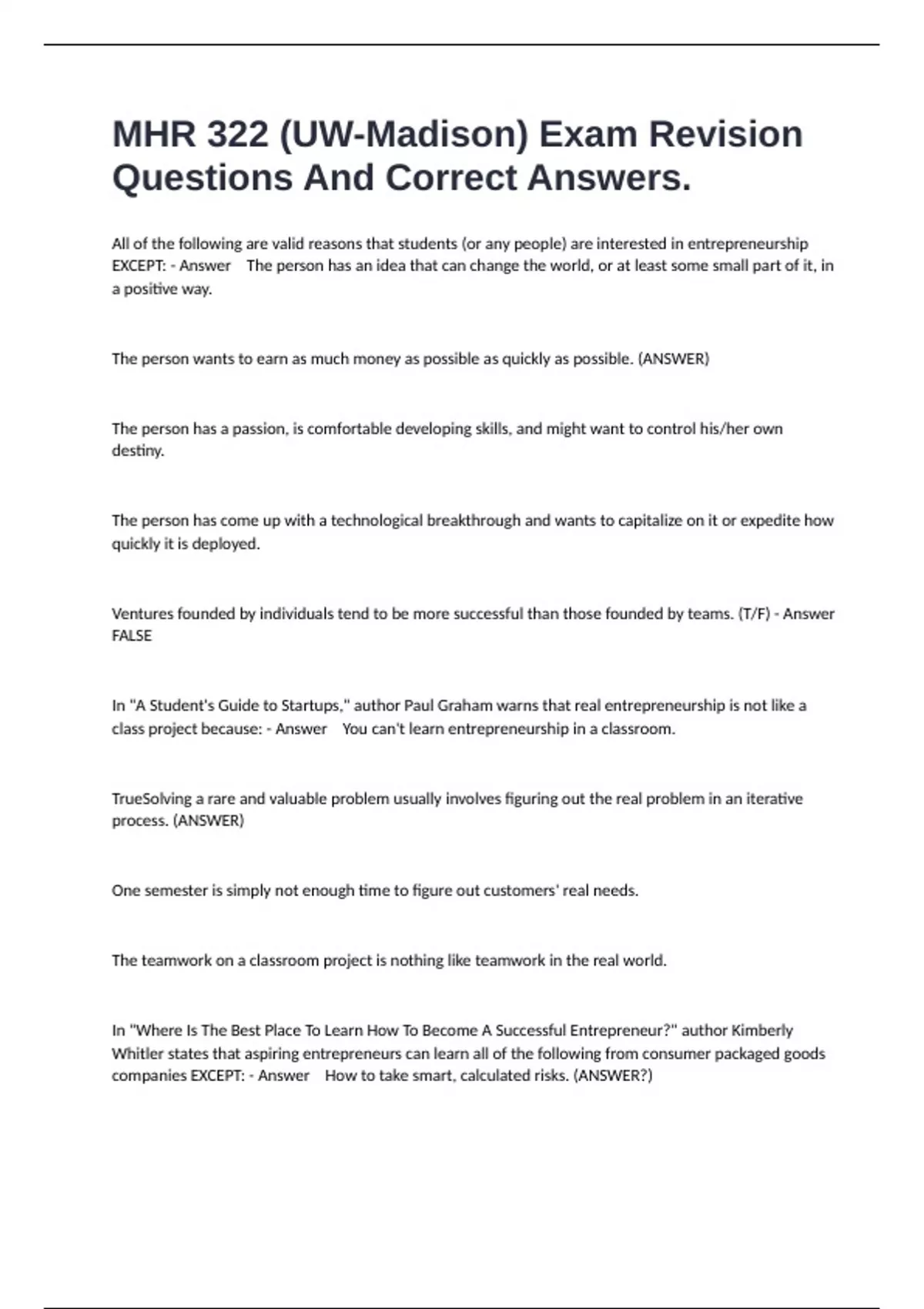 Questions And Correct Answers.