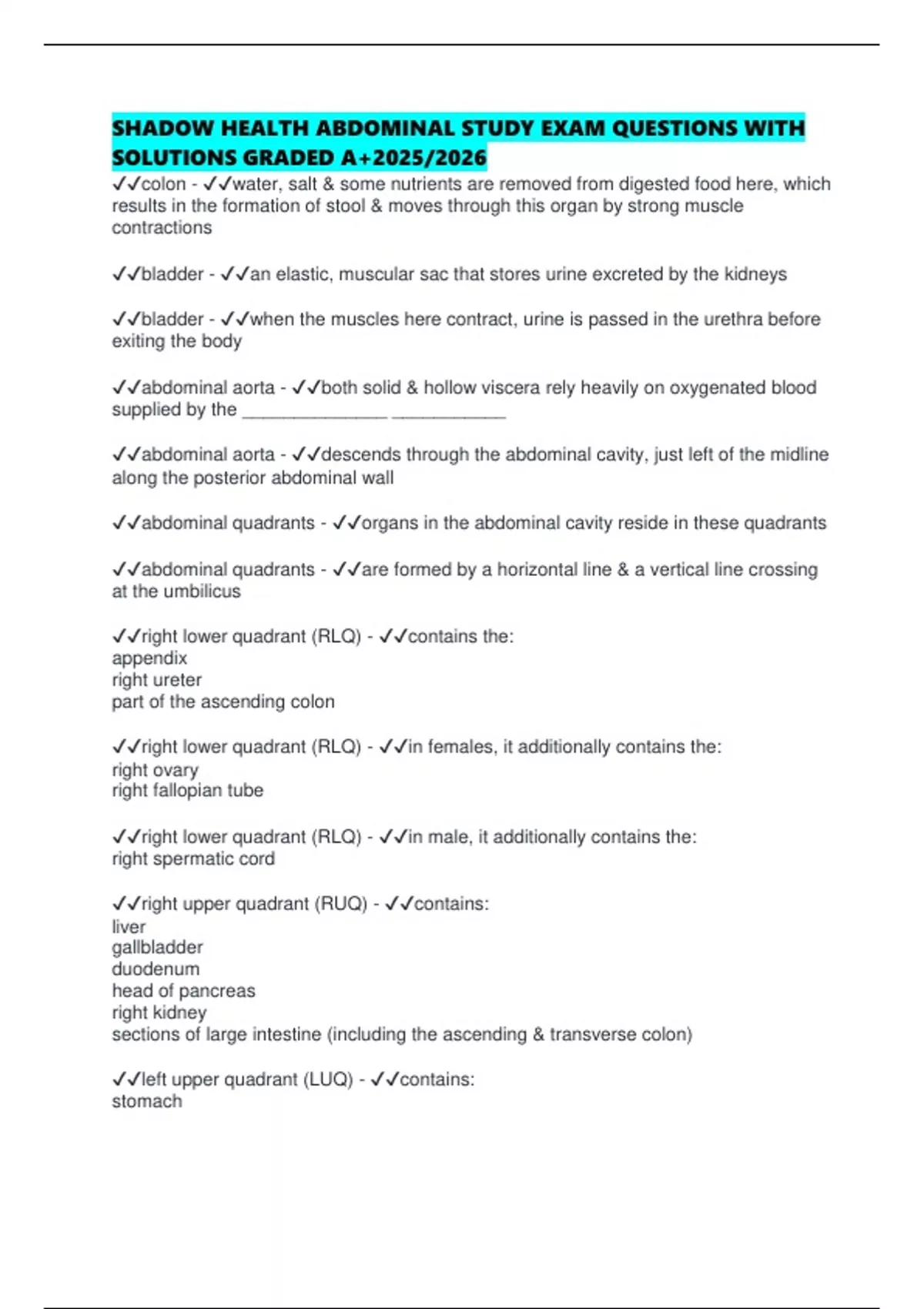 SHADOW HEALTH ABDOMINAL STUDY EXAM QUESTIONS WITH SOLUTIONS GRADED A+2025/2026
