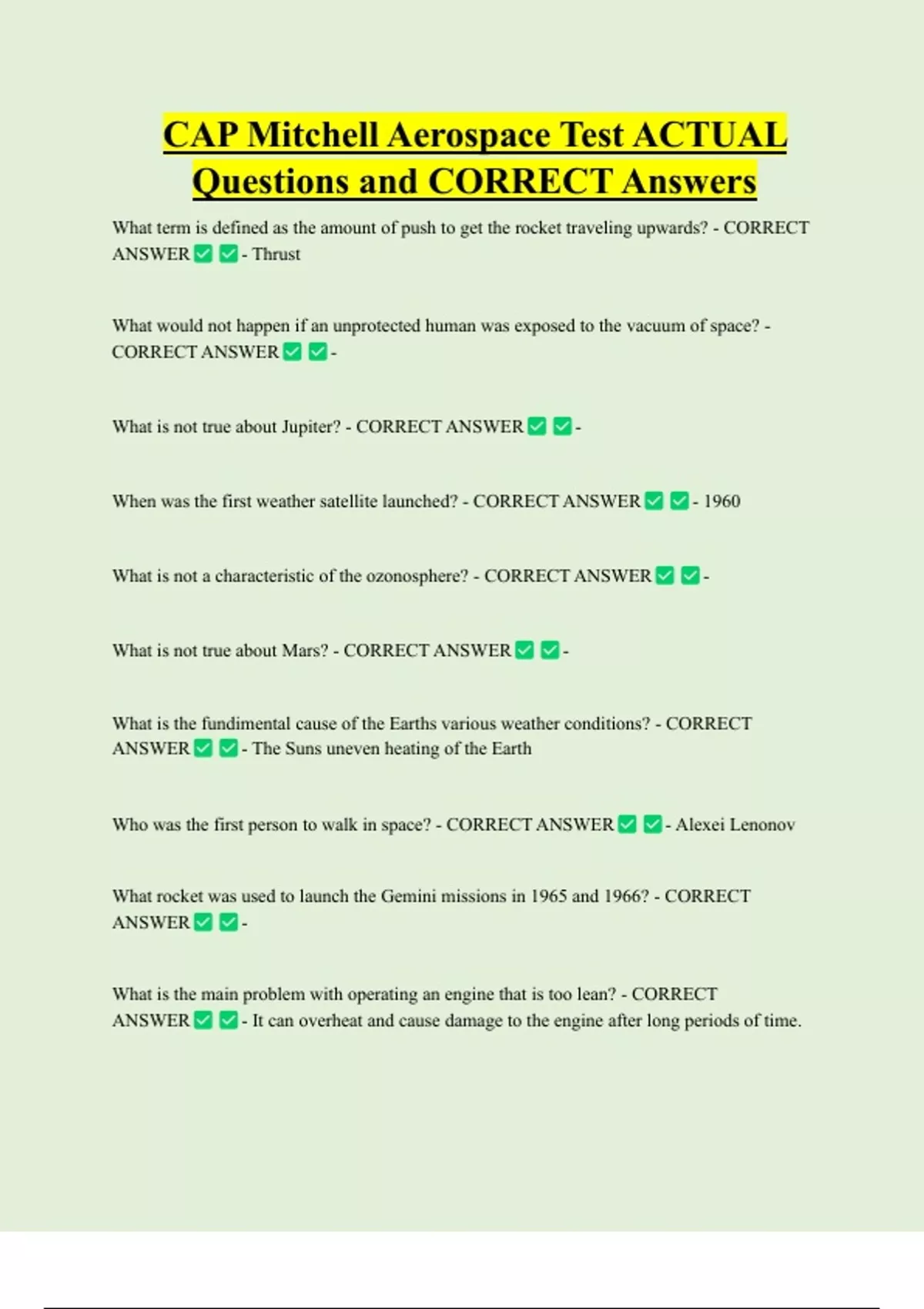 Questions and CORRECT Answers