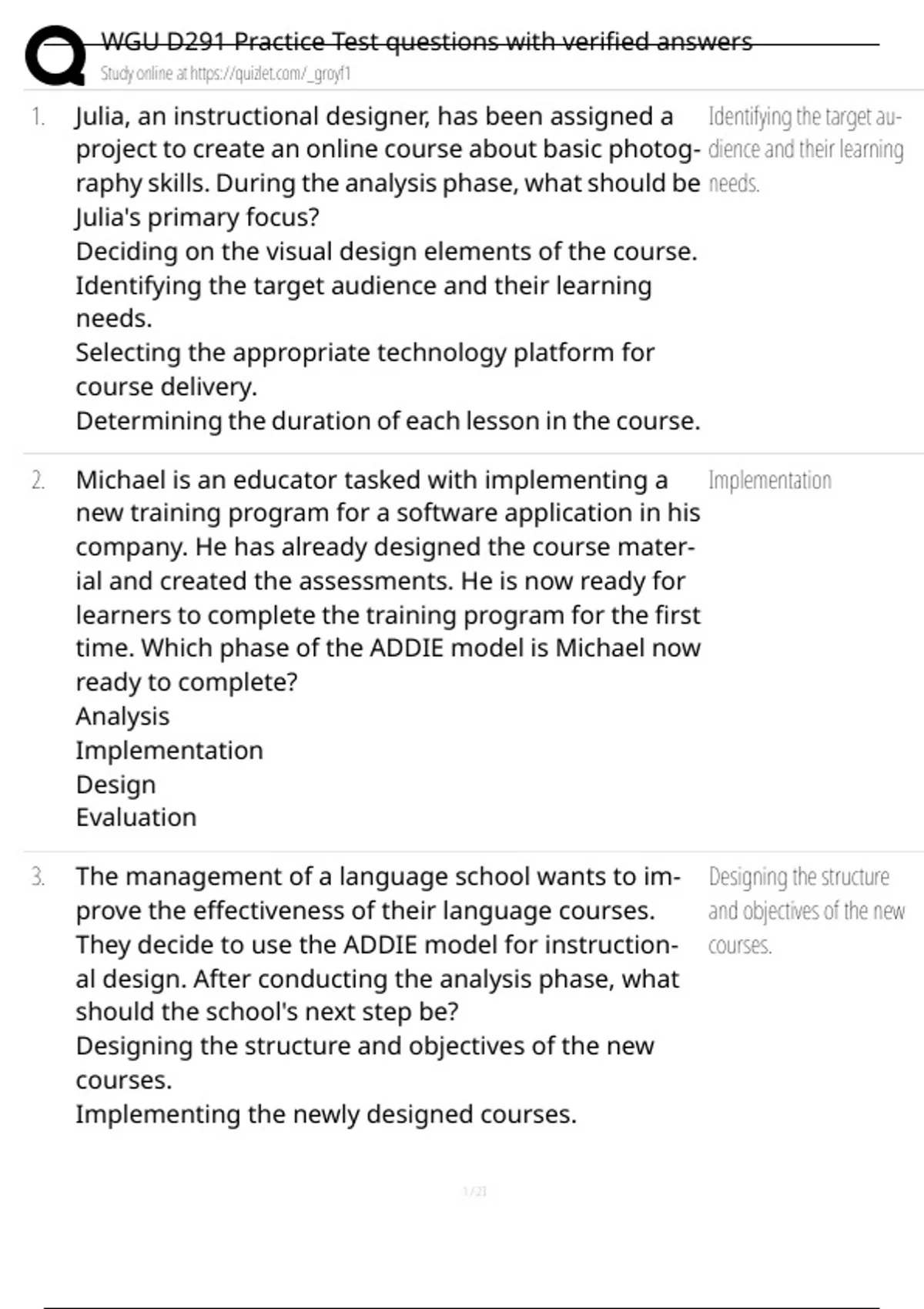 1. Julia, an instructional designer, has been assigned a Identifying the target au-