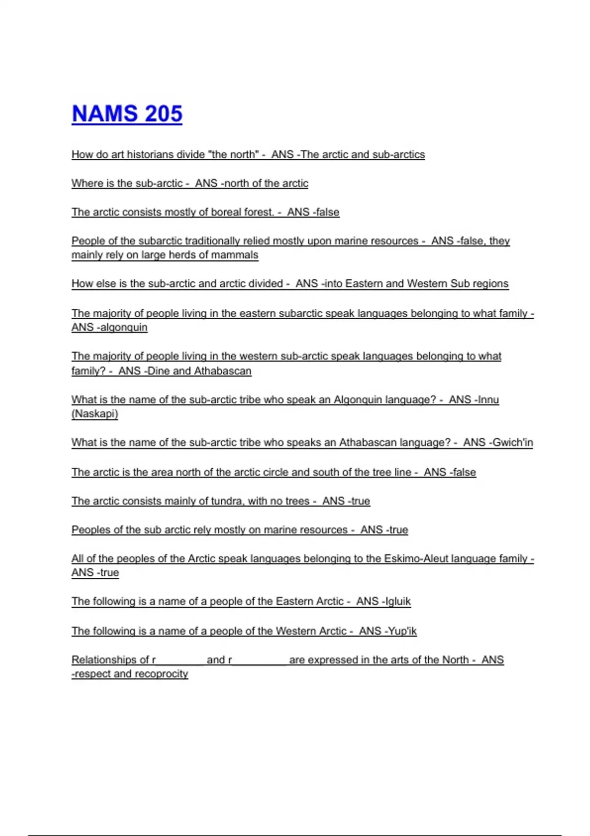 People of the subarctic traditionally relied mostly upon marine resources - ANS -false, they