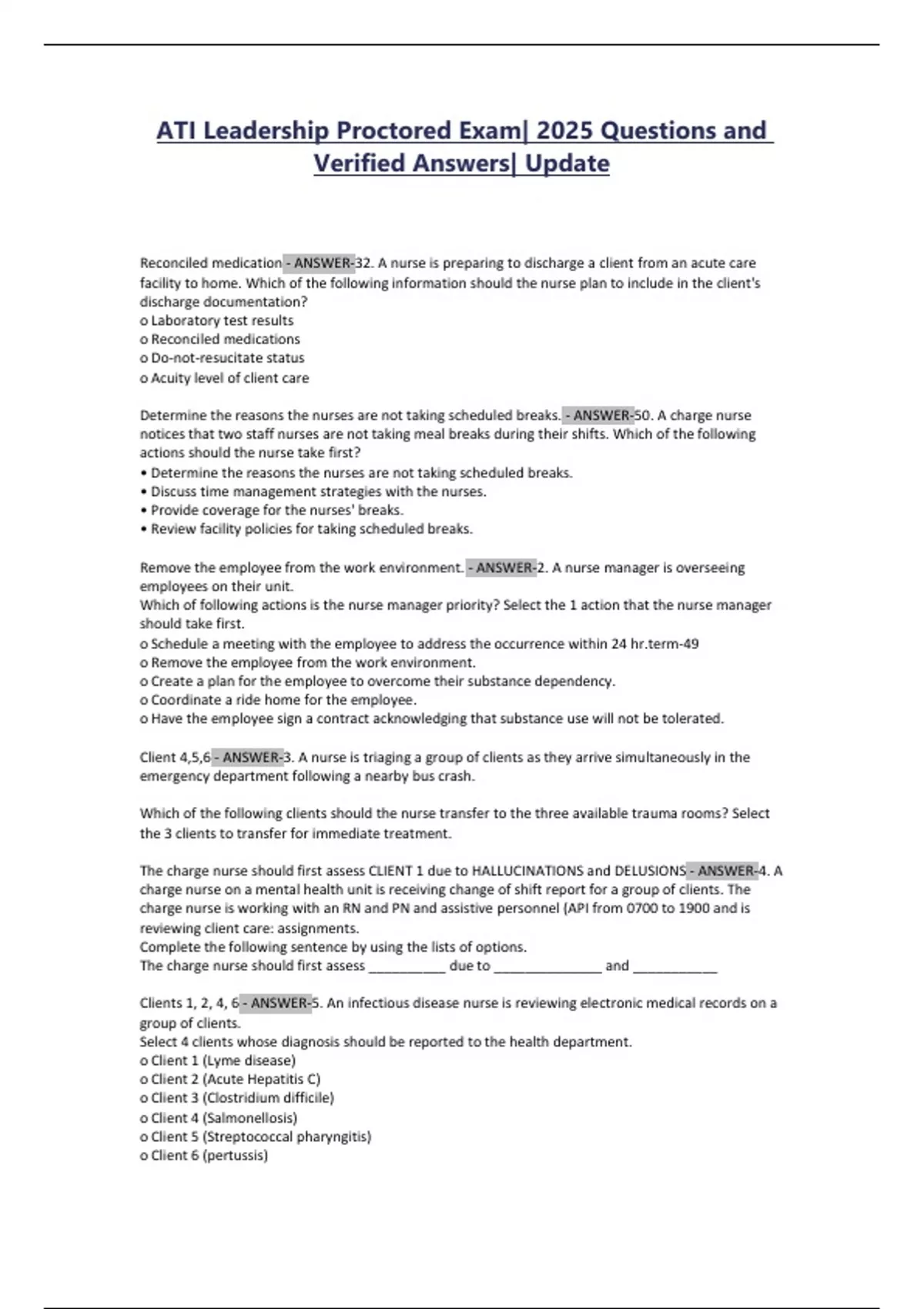 ATI Leadership Proctored Exam| 2025 Questions and