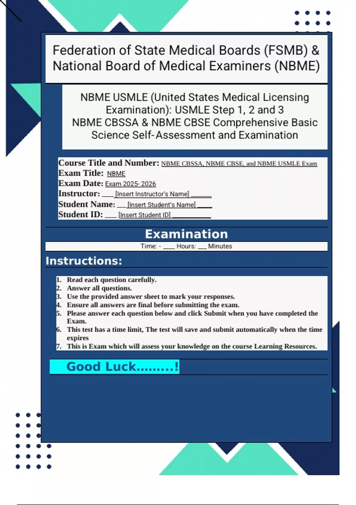 Course Title and Number: NBME CBSSA, NBME CBSE, and NBME USMLE Exam