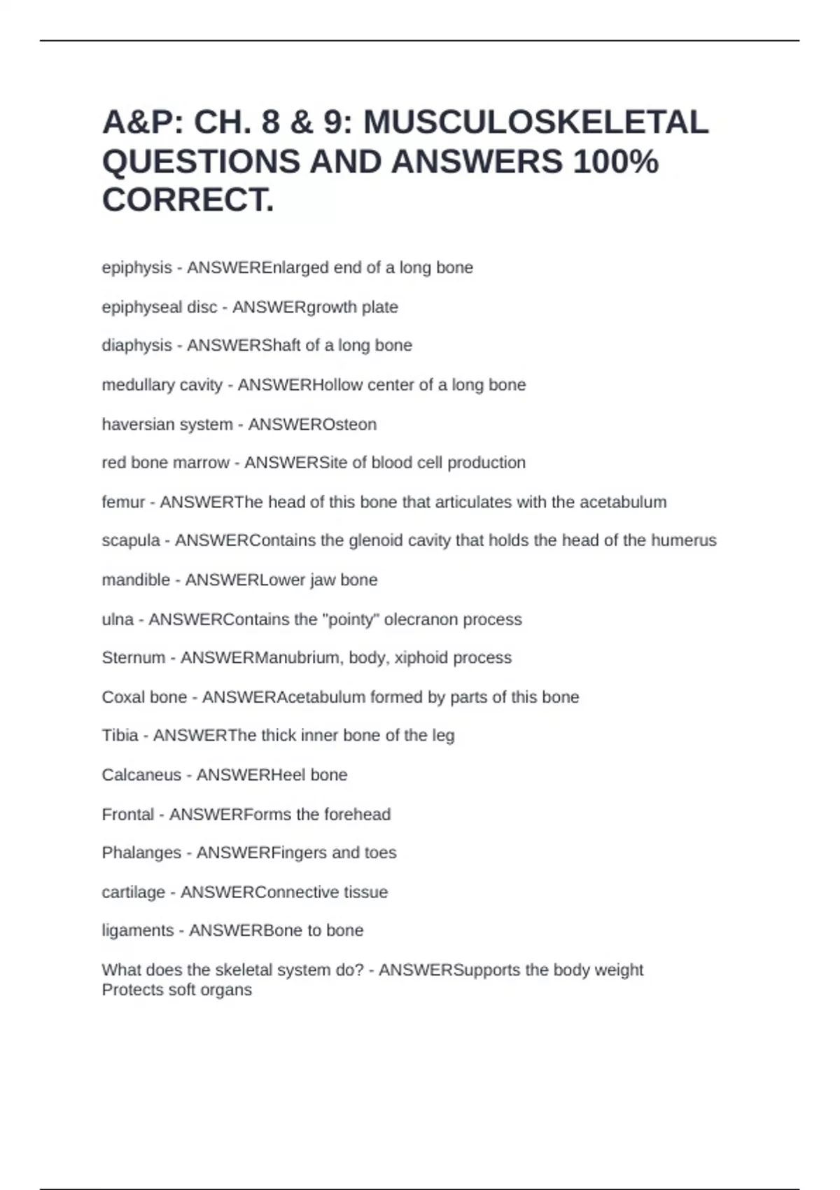 What does the skeletal system do? - ANSWERSupports the body weight