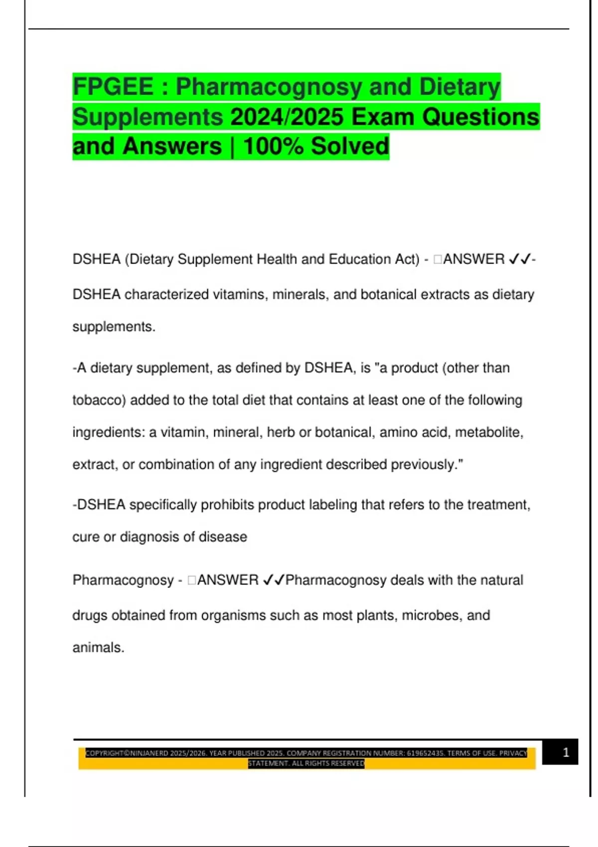 DSHEA (Dietary Supplement Health and Education Act) - 🧠ANSWER ✔✔-