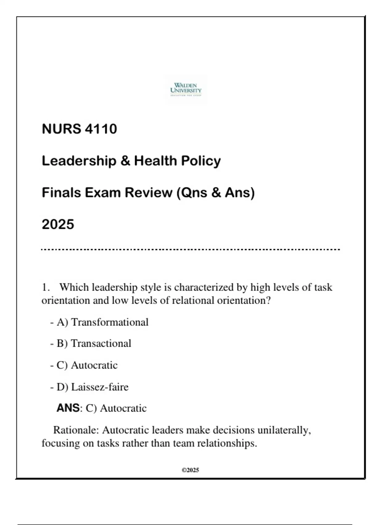 ANS: C) Autocratic