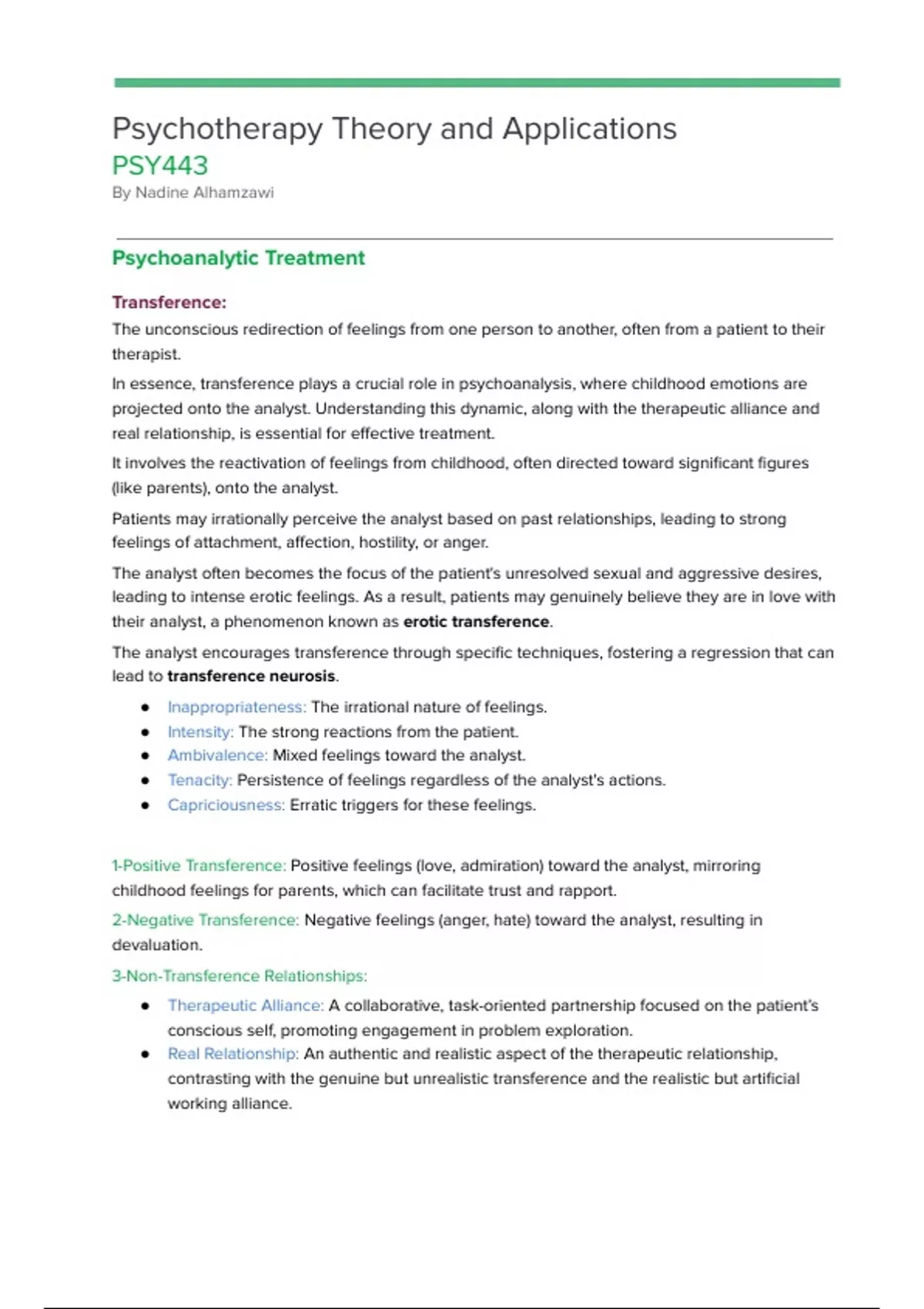 2-Negative Transference: Negative feelings (anger, hate) toward the analyst, resulting in