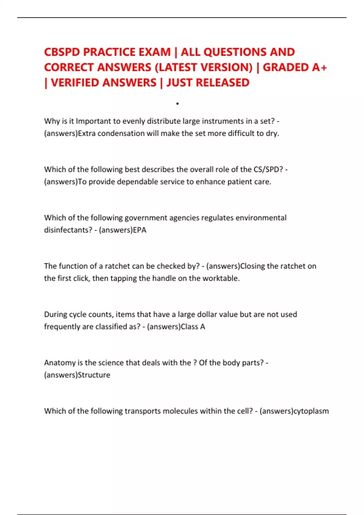 CORRECT ANSWERS (LATEST VERSION) | GRADED A+