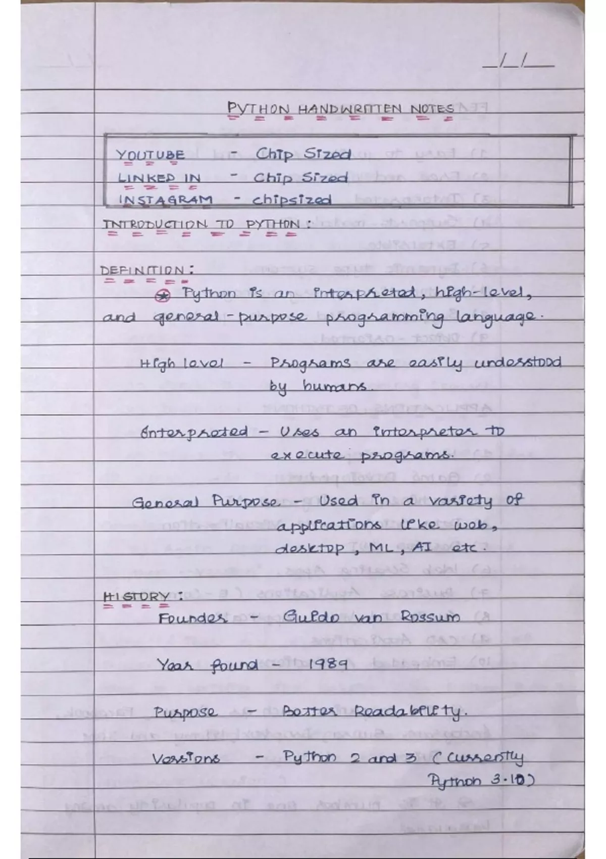 - Written in