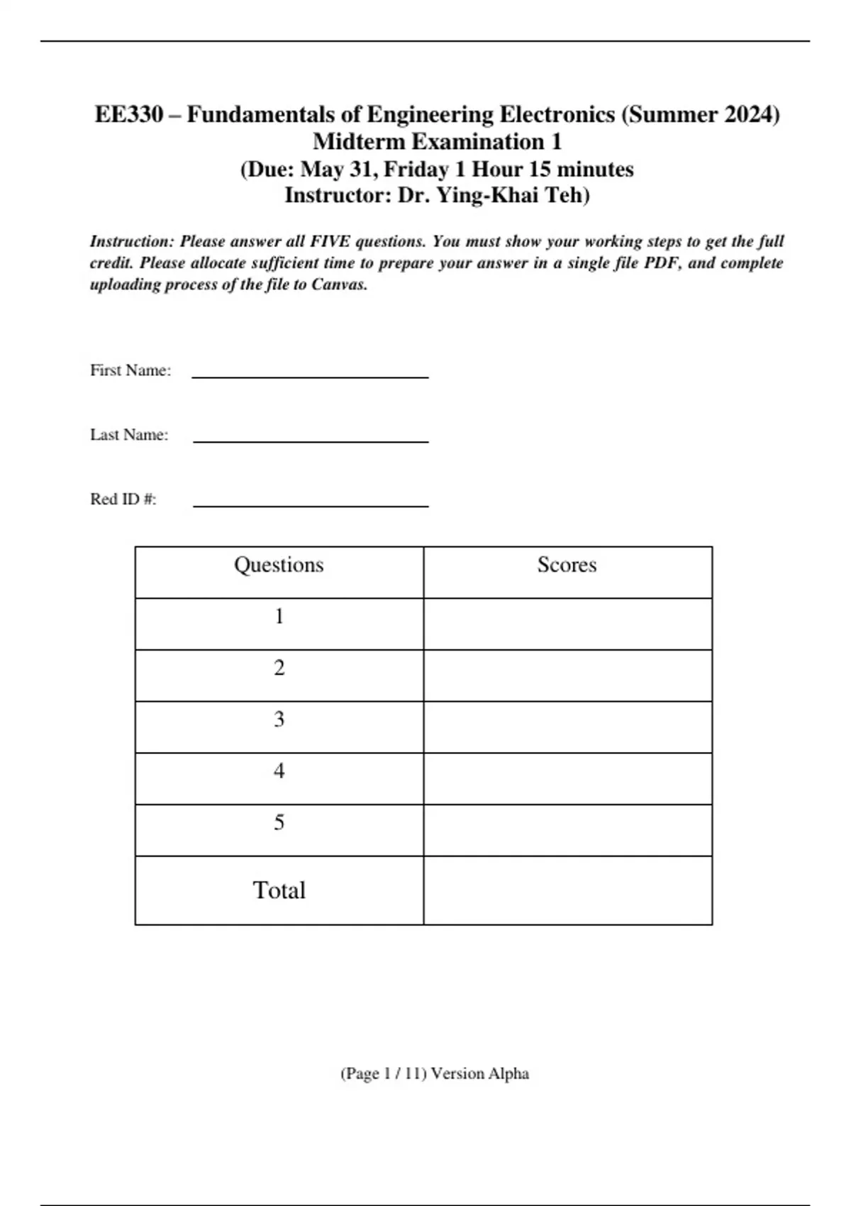 credit. Please allocate sufficient time to prepare your answer in a single file PDF, and complete