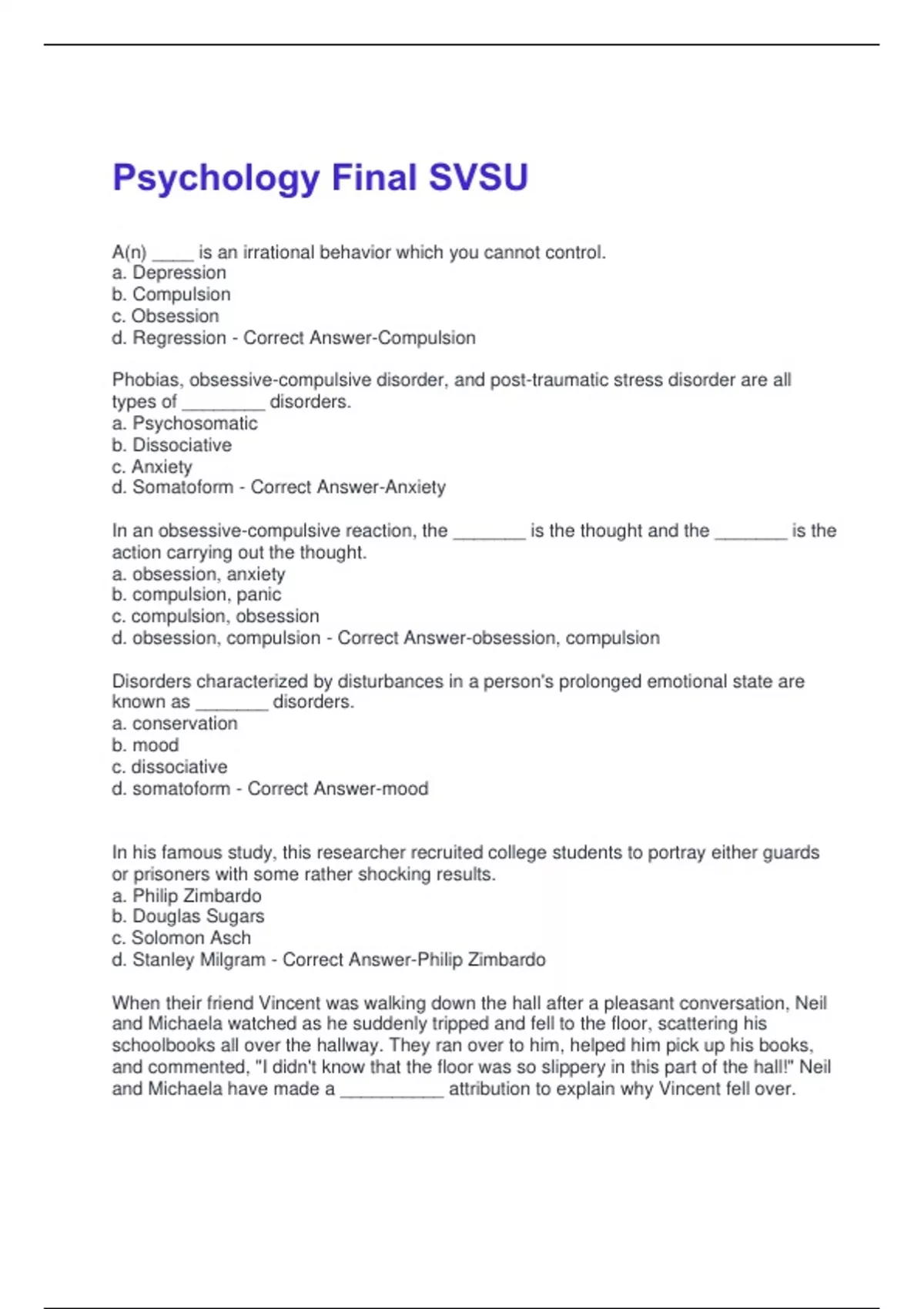 d. obsession, compulsion - Correct Answer-obsession, compulsion