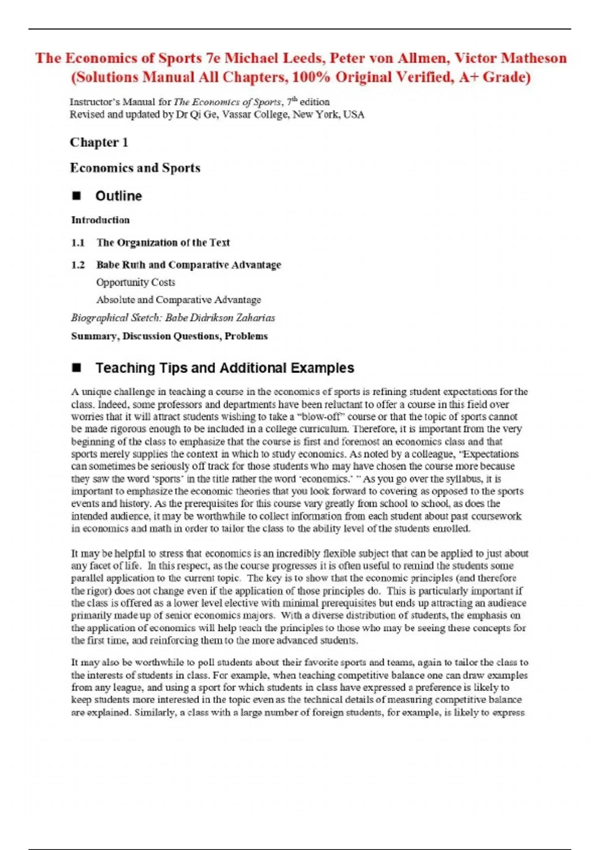 The Economics of Sports 7e Michael Leeds, Peter von Allmen, Victor Matheson (Solutions Manual All Chapters, 100% Original Verified, A+ Grade)