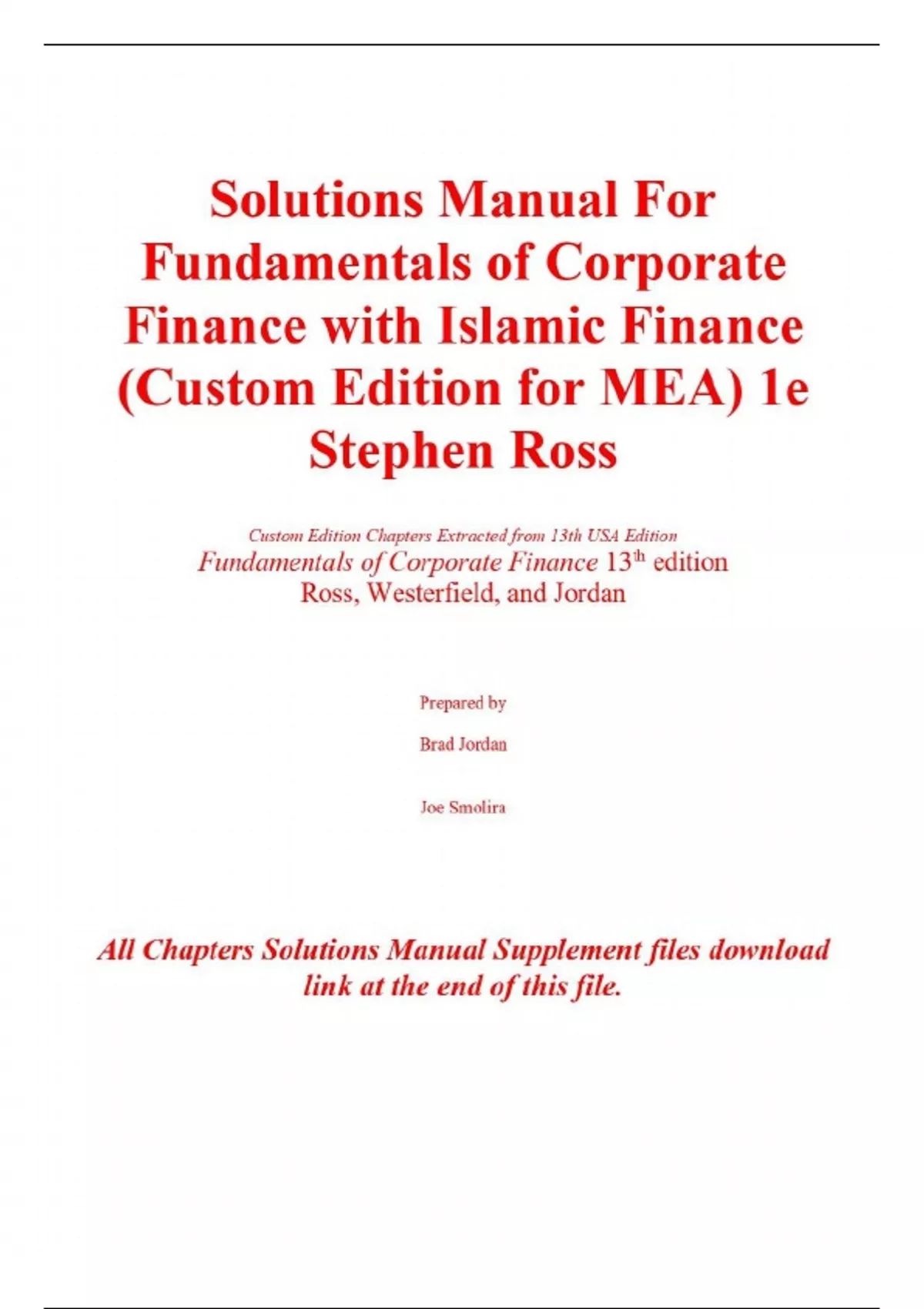 Solutions Manual : Fundamentals of Corporate Finance with Islamic Finance (Custom Edition for MEA) 1e Stephen Ross