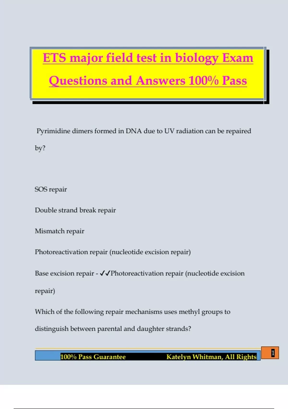 100% Pass Guarantee Katelyn Whitman, All Rights