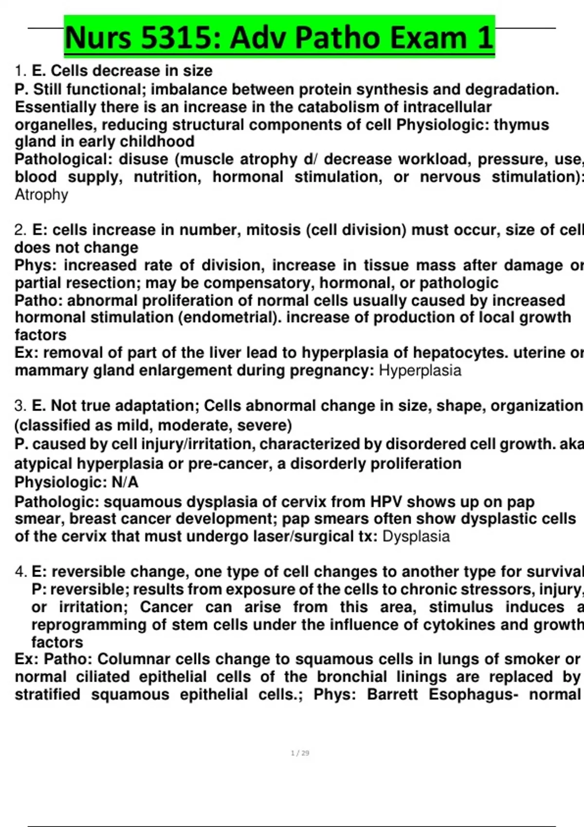 3. E. Not true adaptation; Cells abnormal change in size, shape, organization
